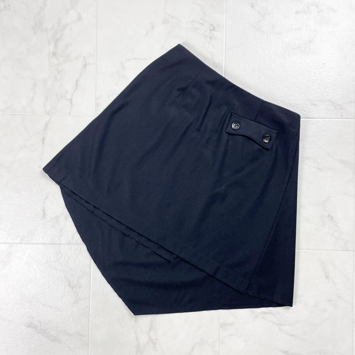McQ Alexander McQueen アレキサンダーマックイーン ウール混 アシンメトリーラップスカート 膝丈 ブラック 黒 サイズ40*GD983