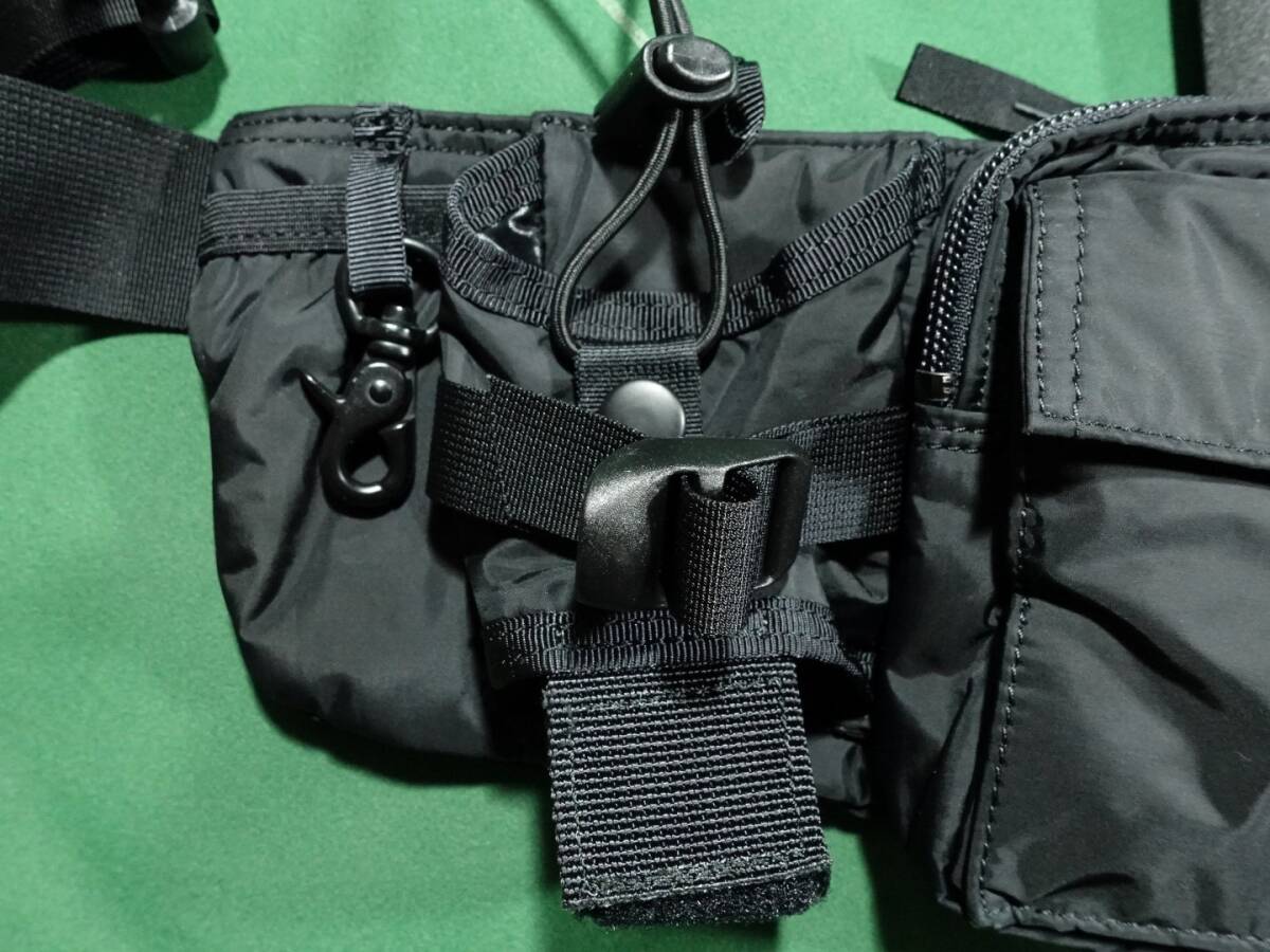 その左横にはゴムコードストッパー付きポケット(本来は2つ折りガラケー向け)。