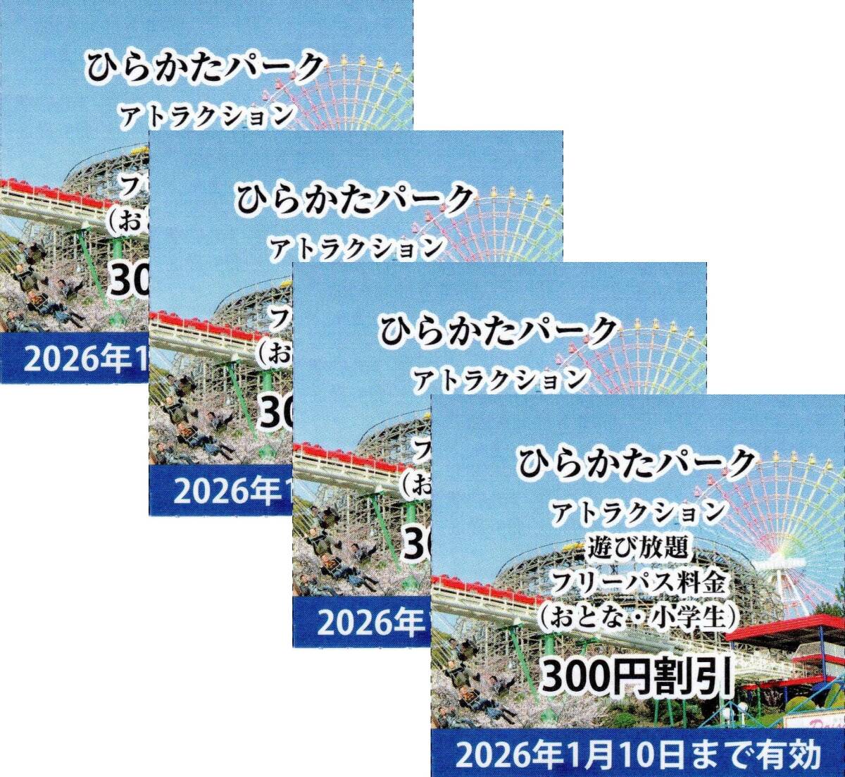 小学生以上4名◇ひらかたパーク アトラクション乗り放題フリーパス料金300円割引券◇2026年1月10日迄★匿名のおてがる配送(ネコポス)込