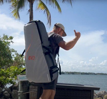 Waydoo EVO の推進ユニット(モーター+マスト構成)をはじめ、ウィング、リモコン、チャージャー、小物などをまとめて保護・持ち運びできる専用バッグです。現地への移動や旅行時、ギアの管理に便利です。