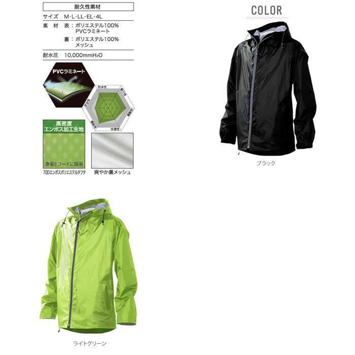 | 商品説明 | ・晴れても着こなせるレインジャケット ・表地は耐久性に優れたポリエステルPVCを採用し、10000mmH2Oの大雨にも耐えられる高い防水力で雨や風を防いでくれる ・裏地は、べたつきを軽減するメッシュタイプでさわやかな着心地が持続する ・ウエアと一体になったフードと絞り調節コードで、身体の中に水や雨に侵入をふせいでくれる。また、裾口も同じ絞り調節コードがある ・ジャケットは、脱ぎ履きが楽なフロントファスナータイプで、ファスナーの内側は水滴の侵入を防ぐフラップ付き ・また、縫製部分には防水加工、手差しポケットには水滴が入りにくいなど細かいところまで雨の侵入を防ぐ設計になっている |