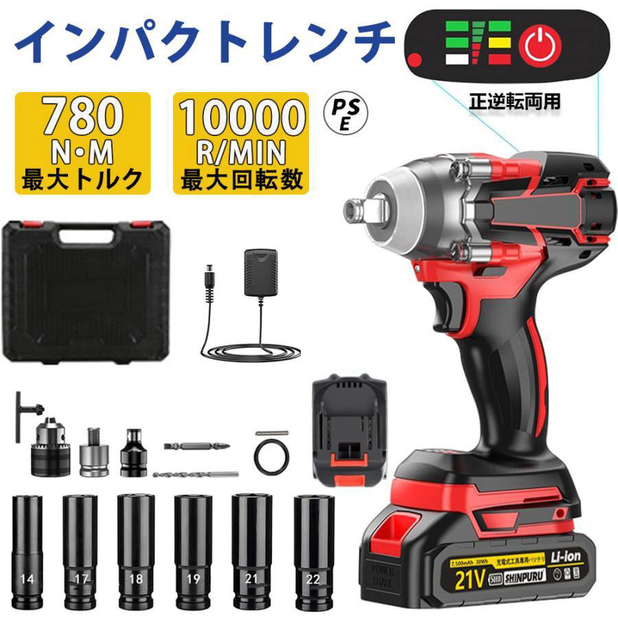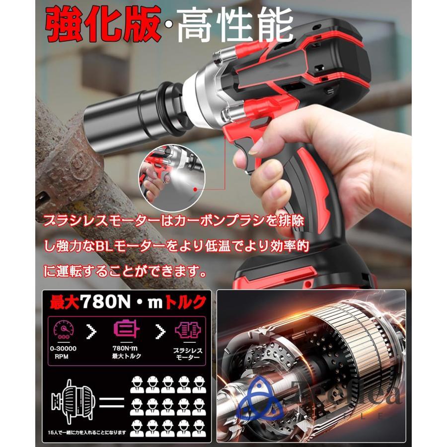 インパクトレンチ 電動 充電式 最大トルク780N・m 電動インパクト マキタ バッテリーに対応可能 自動停止モード 無段変速正逆転両用