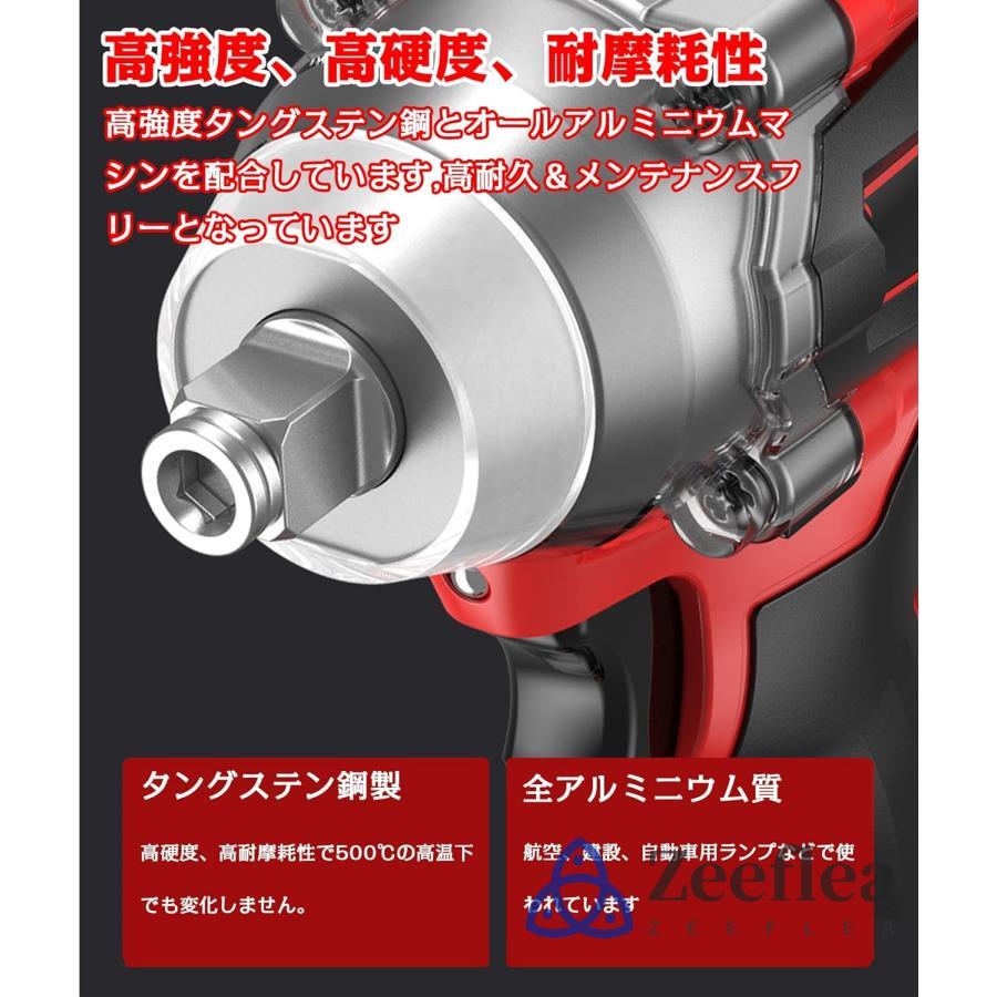 【LEDライト付き】ナットのサイズに対応したソケットを差し込むだけで、すぐ応用でき、工具を使わず、自由に交換できる便利さを持ってます。「レンチ」-ナットとボルトを締めます。本体の差し込み角が12.7mm(1/2インチ)で、ほとんどの市販のソケットを使用でき、使えるに幅広いインパクトレンチです。