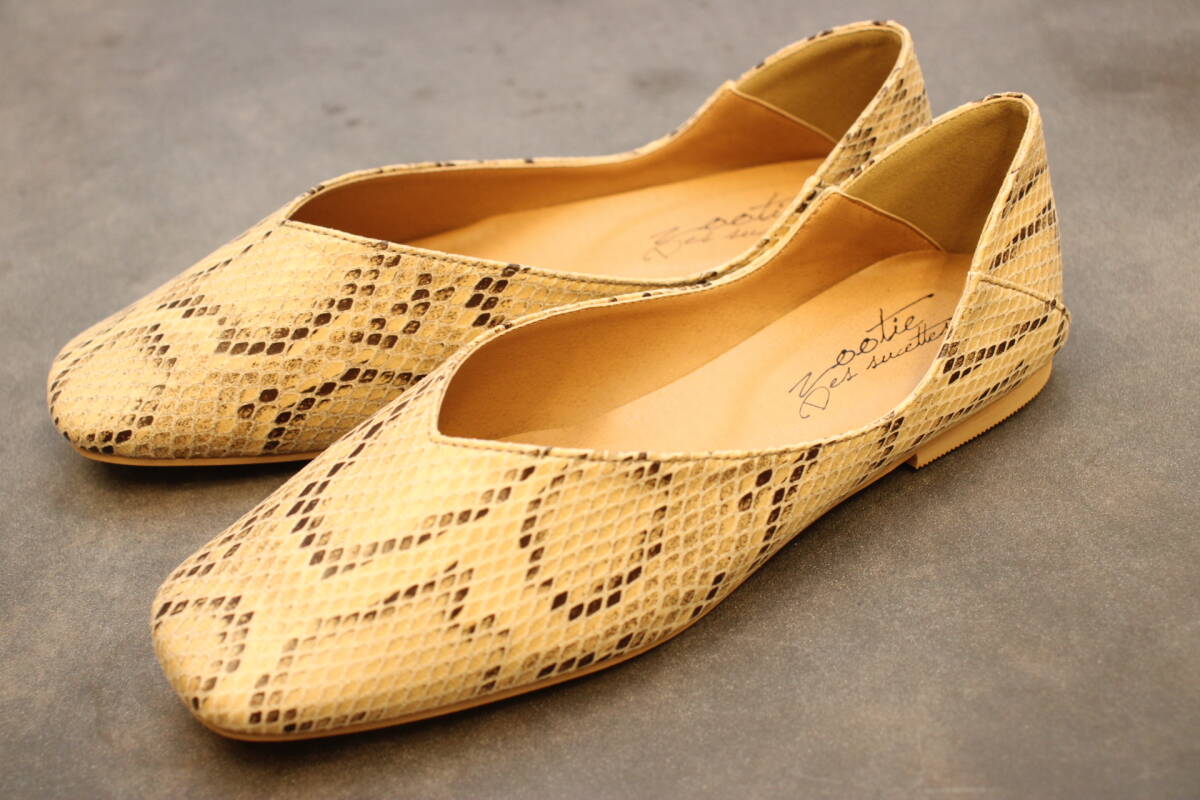 新品 スクエアトゥ Vカットバブーシュ パイソン Lサイズ 128