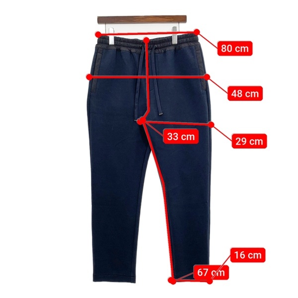 | 実寸法 | ボトムス実寸 ウエスト:80cm 股上:33cm 股下:67cm もも幅:29cm 裾幅:16cm |