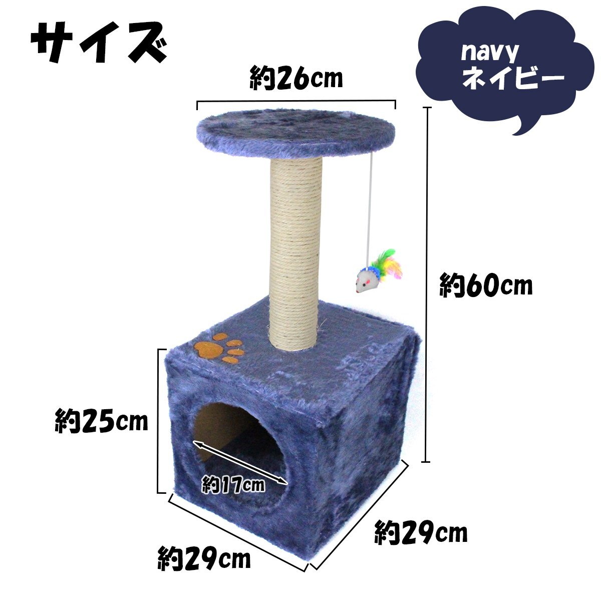 キャットタワー 高さ60cm 猫 肉球 ネイビー 据え置き ネコハウス コンパクト 運動不足 爪磨き 遊び場 隠れ家 置き型 ネコ