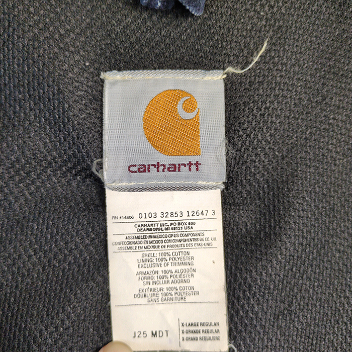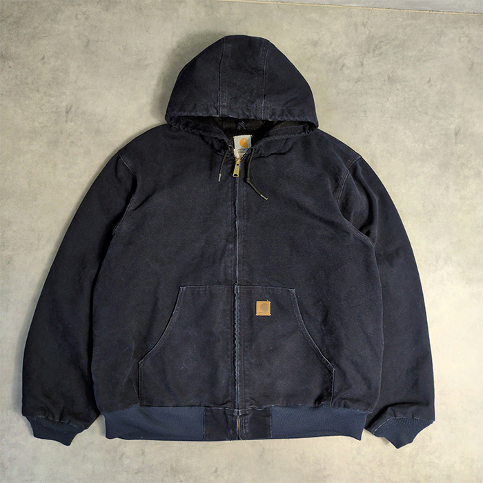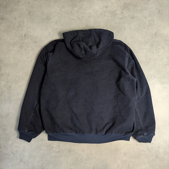 アクティブジャケット サイズ表記 XL およそのサイズ 肩幅(約57m) 身幅(約70cm) 袖丈(約68cm) 着丈(約71cm) カーハートアクティブパーカー2000年代初頭のメキシコ製モデル。 気になるダメージ等は画像に添付しており特に大きな汚れやダメージは無く程度の良い1着です。 現行のMDTカラーより深みのあるネイビーとなり色落ちもこれからいい塩梅となりそうで長きに楽しめる1着です。 その他、使用感や擦れ、汚れ等の細かいダメージはありますが、着用に致命的なダメージはありません。 古着となりますので、ご理解の上、神経質な方はご入札を控えて頂きます様お願い致します。 |