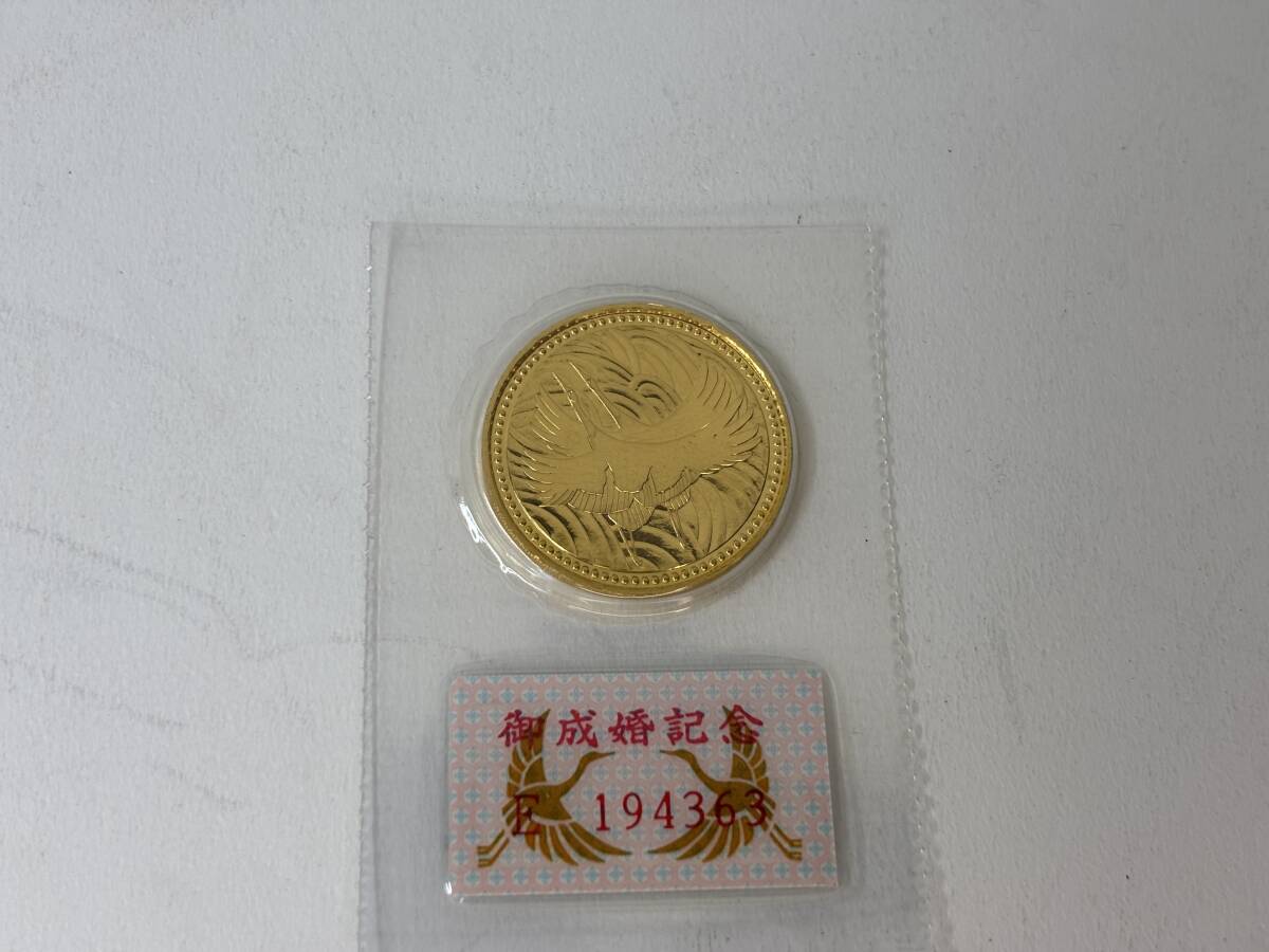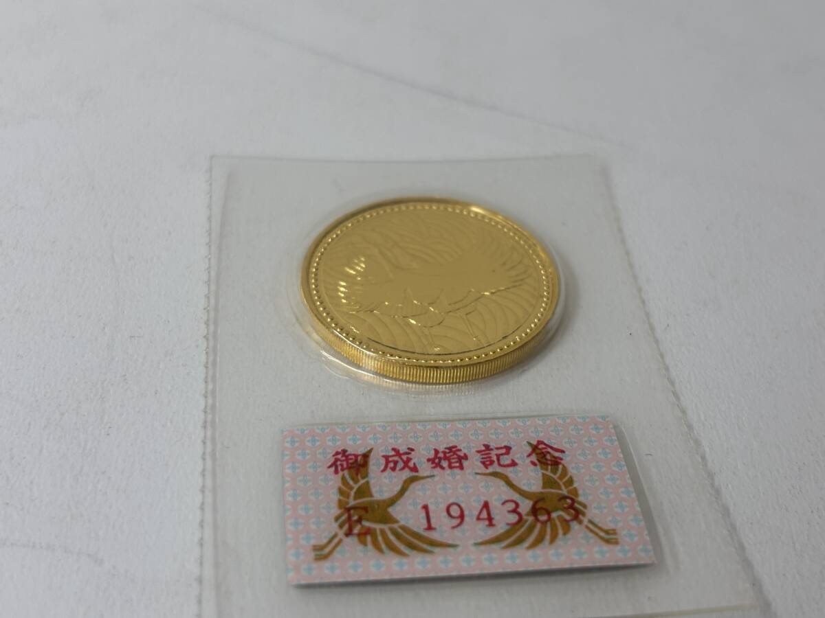 【金貨】皇太子殿下 ご成婚記念 5万円金貨 純金 平成5年 記念貨幣です。 ◎ブリスターパック未開封です。 ◎内容・皇太子殿下 ご成婚記念 5万円(純金18.0g) ◎購入後、暗所で保管をしていました。経年劣化による僅かな変化についてはご了承ください。 写真のものですべてです。写真でご判断をお願いいたします。 個人のコレクションですので、完璧なものをご希望のご遠慮ください。 ノークレーム、ノーリターンでお願いいたします。