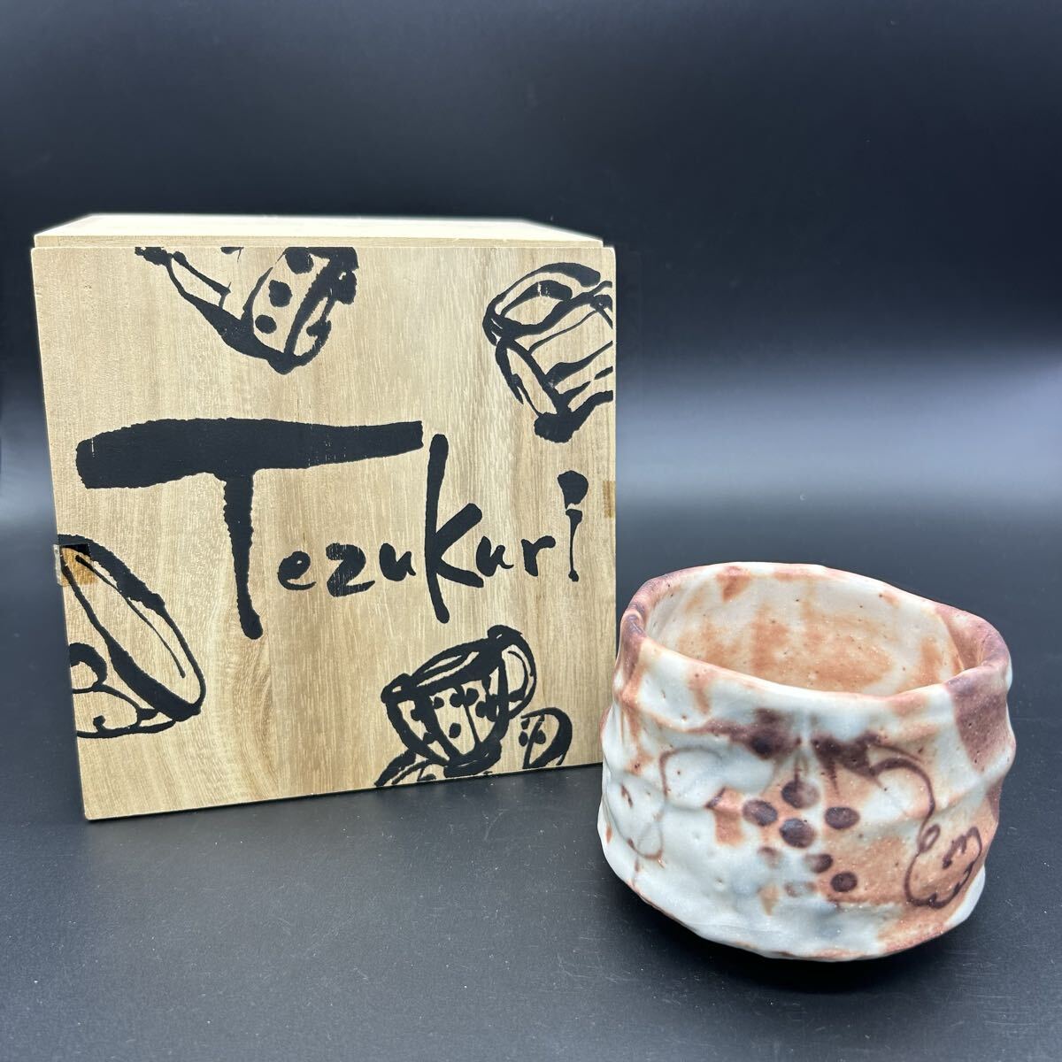 Tezukuri 玉山窯 赤志野 ぶどう 焼酎カップ 酒器 陶器 オ14