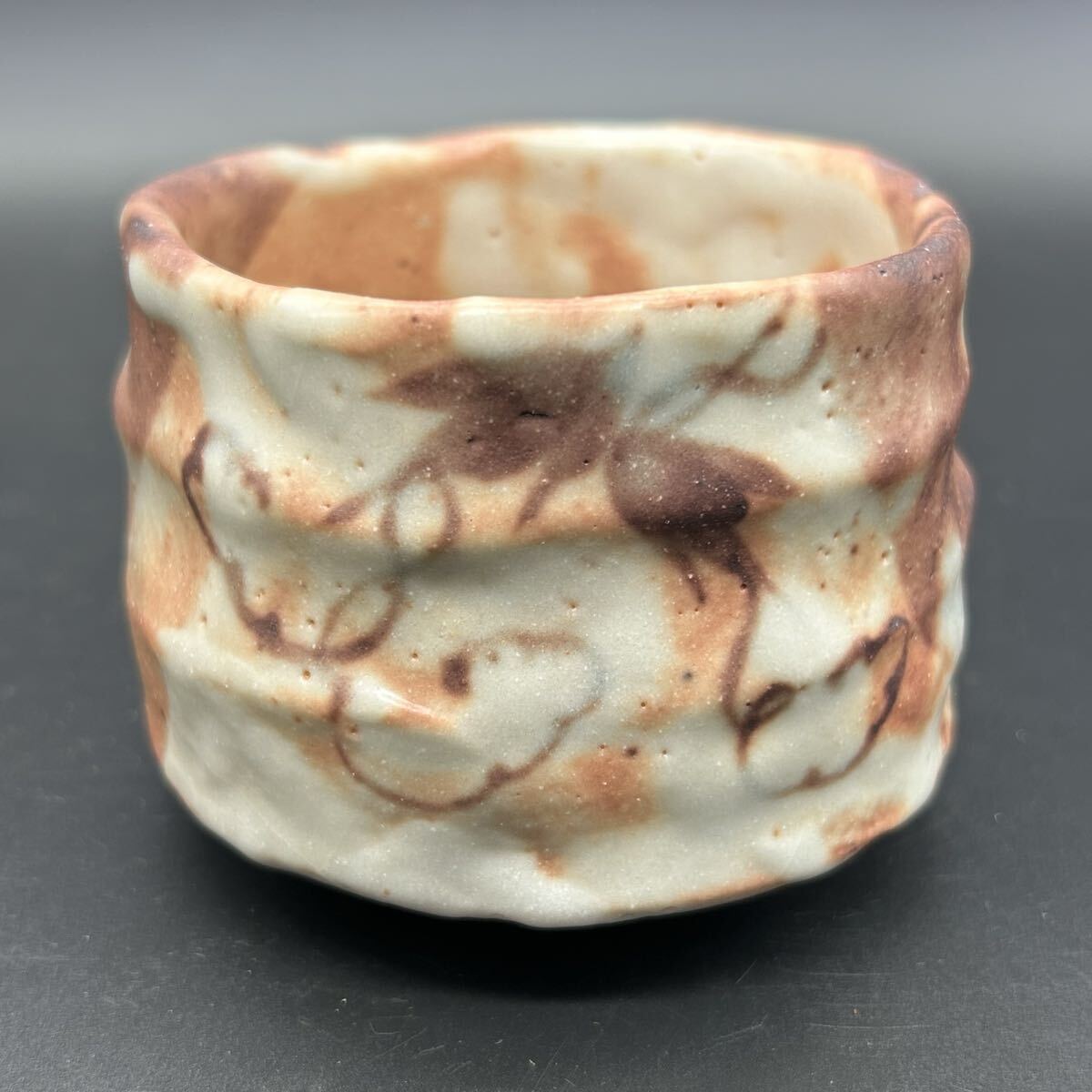 Tezukuri 玉山窯 赤志野 ぶどう 焼酎カップ 酒器 陶器 オ14