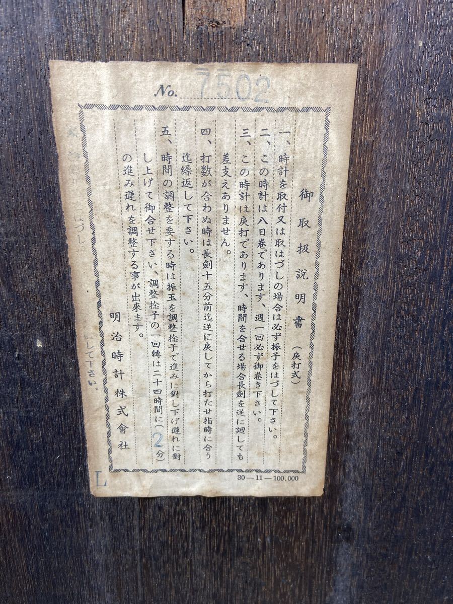 10.11.14 レトロ アンティーク ゼンマイ式 振り子時計 未確認ジャンク 明治時計株式會社 7502