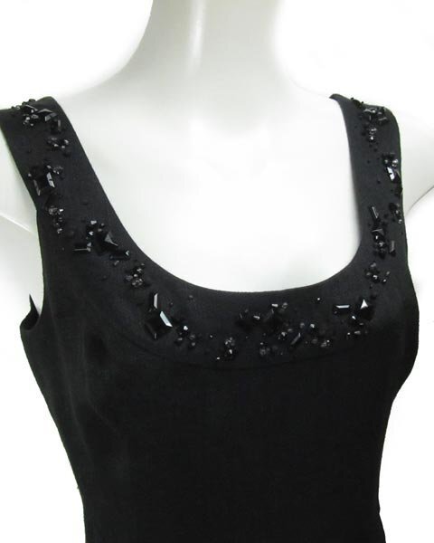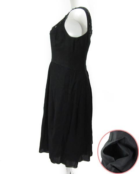 商品名 | 黒 ビジュー 付 ノースリ ワンピース 40 |