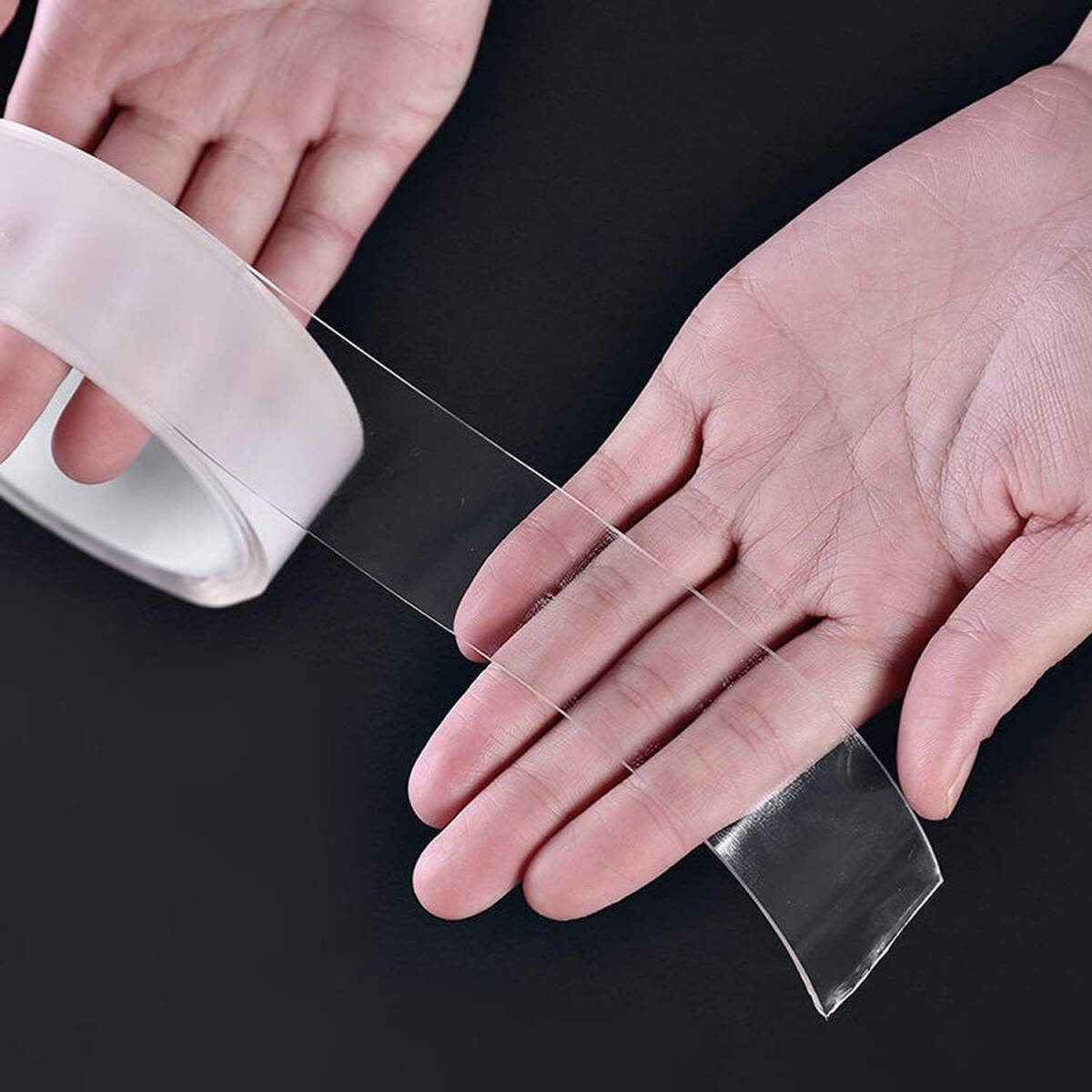 • 多機能テープ---素材はアクリルゴムを使用し、透明で強力な粘着力であらゆるアイテムに貼り付けができます。この超強力な粘着両面テープは、-16Cから62C(150F)までの温度範囲で使えます。