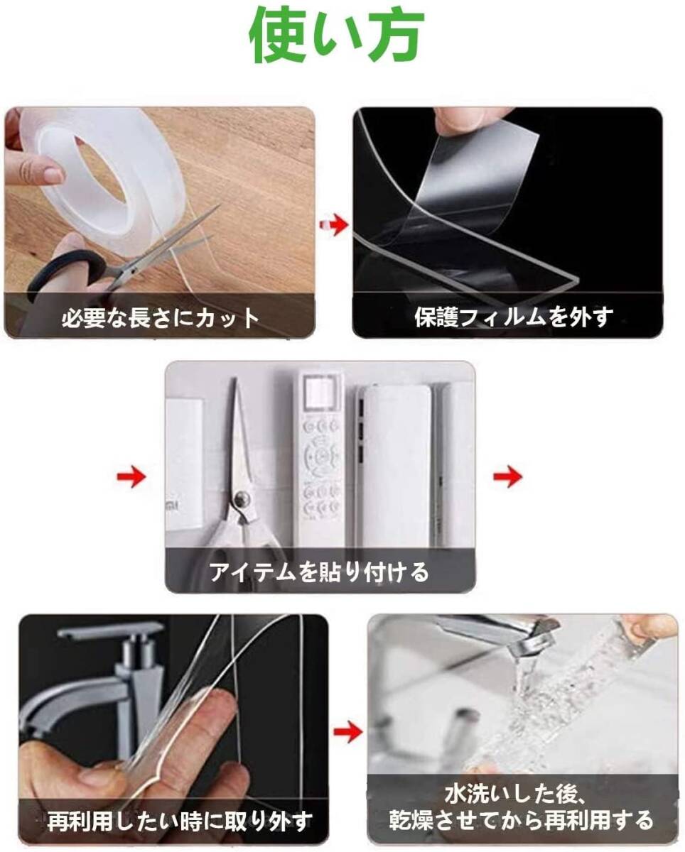 両面テープ ナノテープ 超強力テープ 魔法両面テープ 魔法のテープ はがせる のり残らず あと残らない 防水 繰り返し利用可能 洗える 多機能 収納 浮かせる収納 滑り止め 地震対策 家庭 学校 オフィス