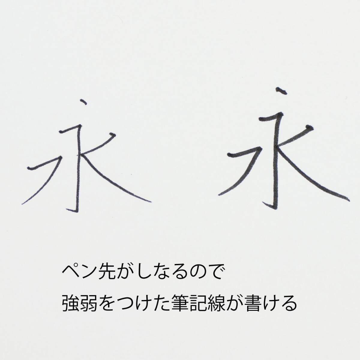 ソフトタッチのプラスチックペン先の万年筆。 流れる様な曲線を生かしたフォルム。しなやかな書き味。 インキがなくなる最後までみずみずしく書けます。