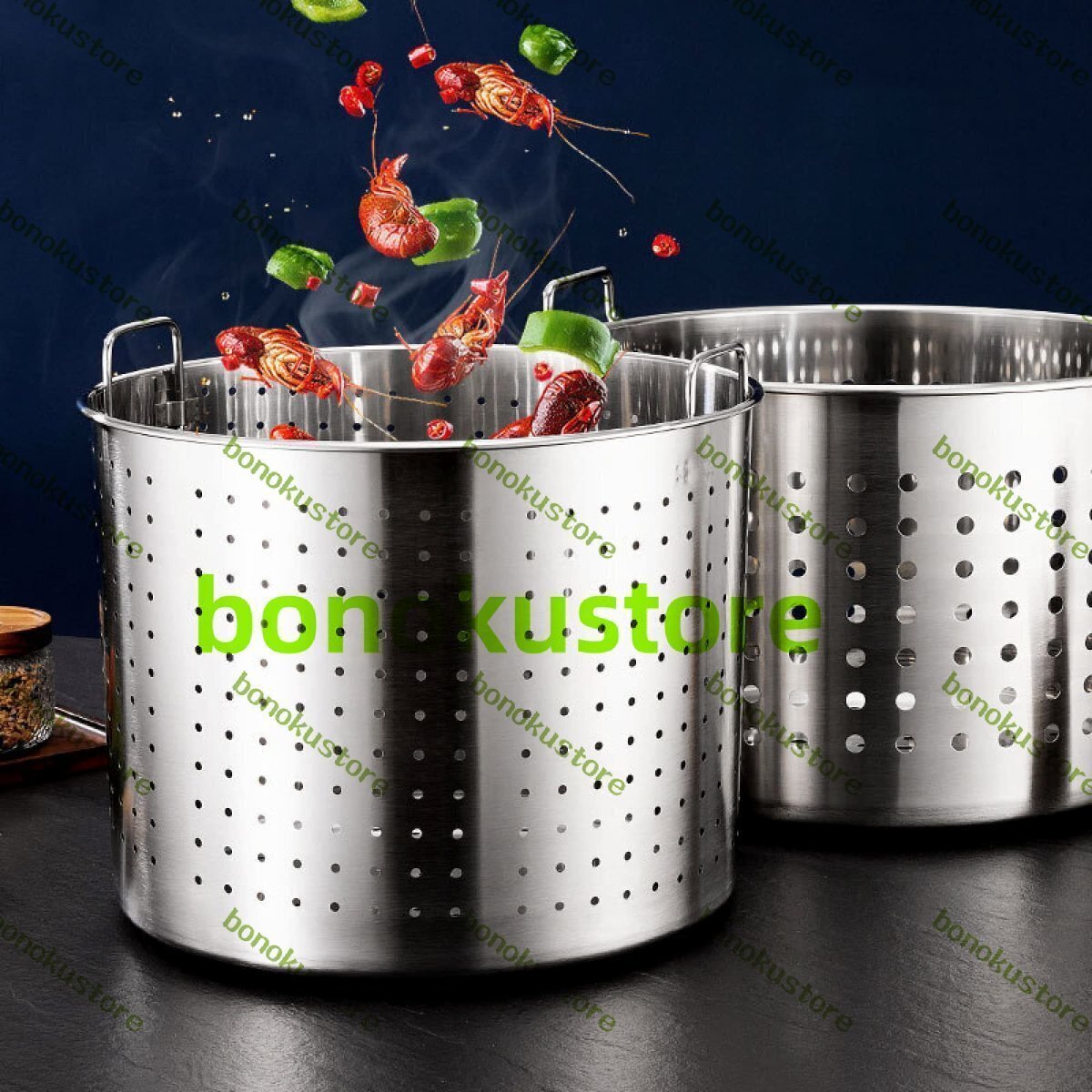ザリガニ用ヘビーデューティストックポット シーフードターキーフライヤーポット ストレーナーバスケット付き ステンレス鋼 業務用ハマグリ蒸し器 バケット調理器具 家庭用 屋外用 / 63クォート (45クォート)
