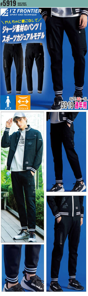 アイズフロンティア ヘビージャージージョガーパンツ 5919 ネオブラック 通年 3L 37ネオブラック