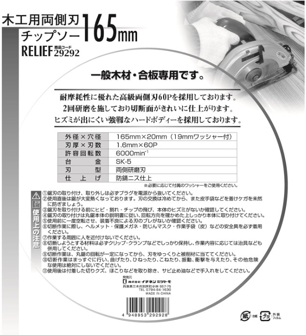 RELIEF(リリーフ) 両側刃チップソー 165mm 29292 60P イチネンアクセス