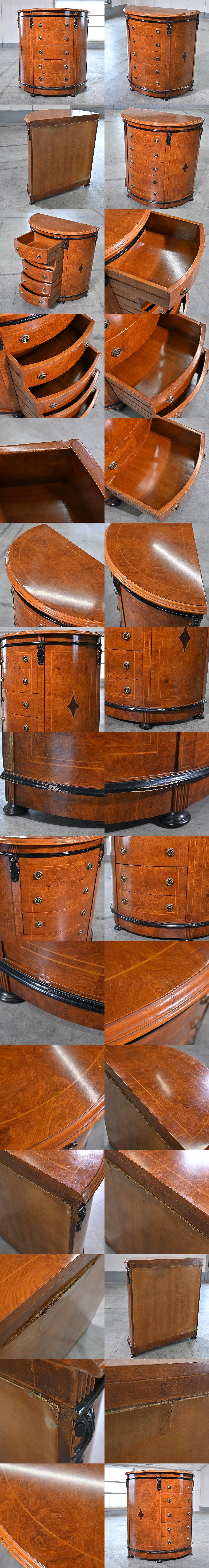 イタリアンテイスト 半円チェスト クラシカル マホガニー材 飾り台 ハーフムーン ビンテージ風 引き出し 収納 リビング_ CL italia メデア