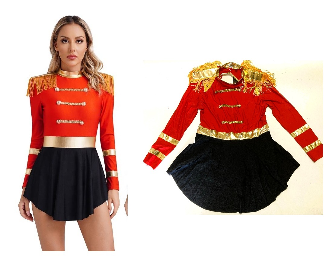 特大3XLサイズ RED&BLACK サーカスリング ダンスウェア長袖 インブリーフレオタードつるつる コスプレ ステージ衣装 IEFIEL社製