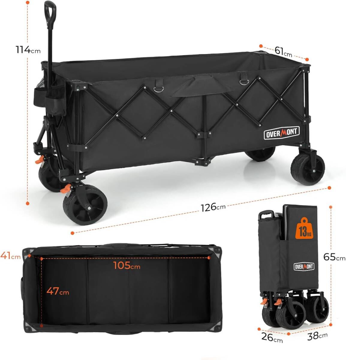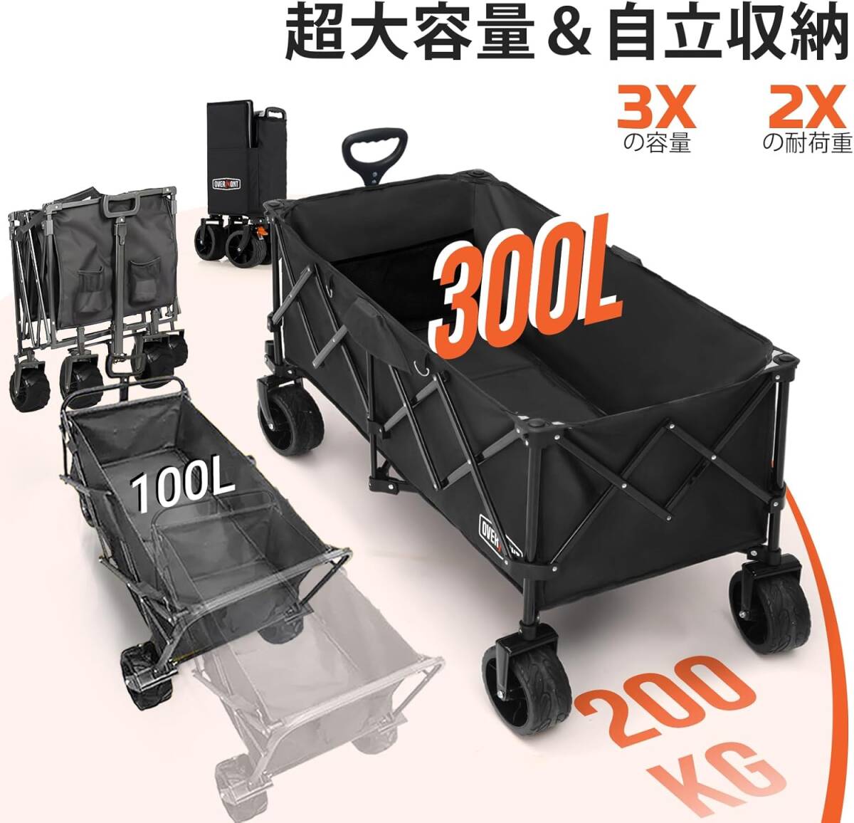 Overmont キャリーワゴン 特大容量300L アウトドアワゴン 耐荷重200kg ベアリング付き 荷室加長 キャリーカート キャンプカート