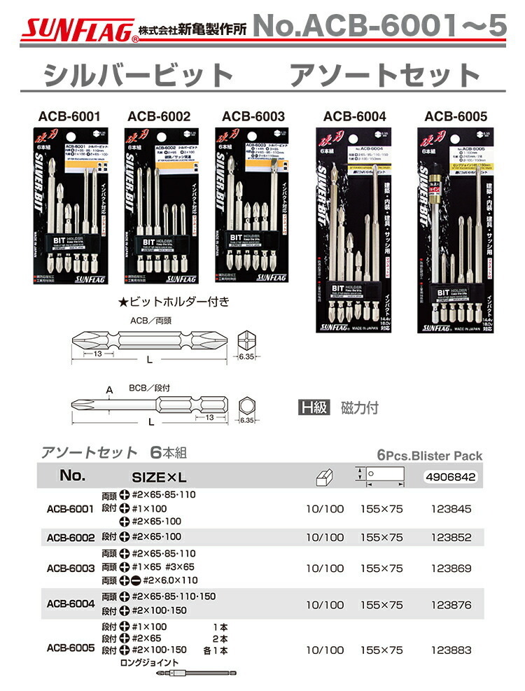 【オススメ】【数量限定】〈SUNFLAG〉ホルダー付ビットセット 段付 No.ACB-6002