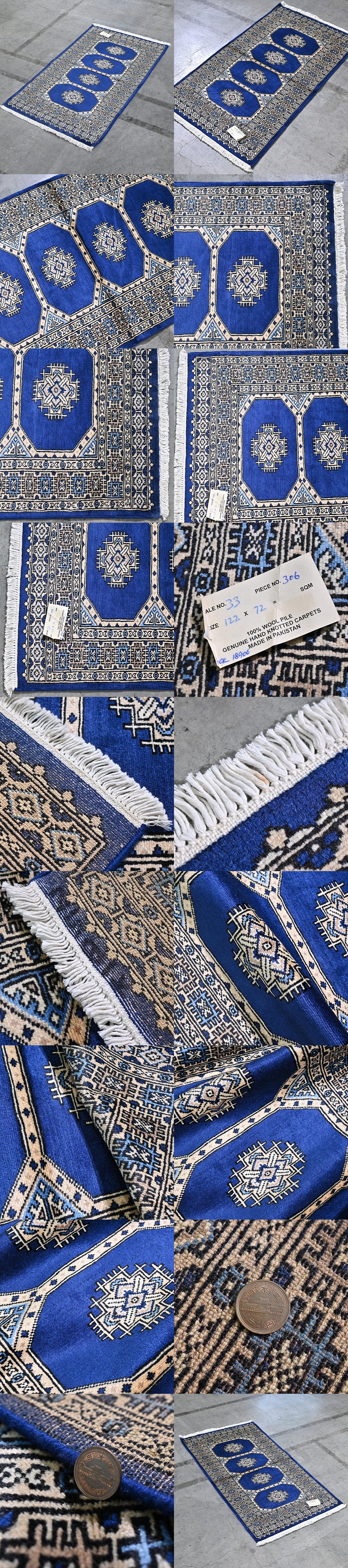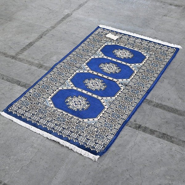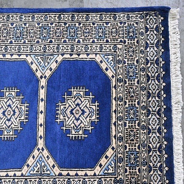 新品 未使用 パキスタン製 手織り ウール絨毯 ラグ ボハラ柄 ギュル文様 ハンドノット 羊毛 カーペット マット ホテル 応接室 P-110