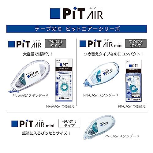 説明 今までに無い軽い引き心地のテープのり「ピットエアーミニ」の5個セット。 エアータッチシステム搭載により、抵抗を軽減し軽い引き心地を実現。 新開発の「パワーネットテープ」により、強い粘着力と良好なのり切れの両立を実現。 携帯時には、ゴミなどの侵入を防ぎ、使用時には簡単操作で開閉可能な「フルカウルヘッドカバー」を搭載。 封筒の糊付け、ラッピング、スクラップなどに最適。