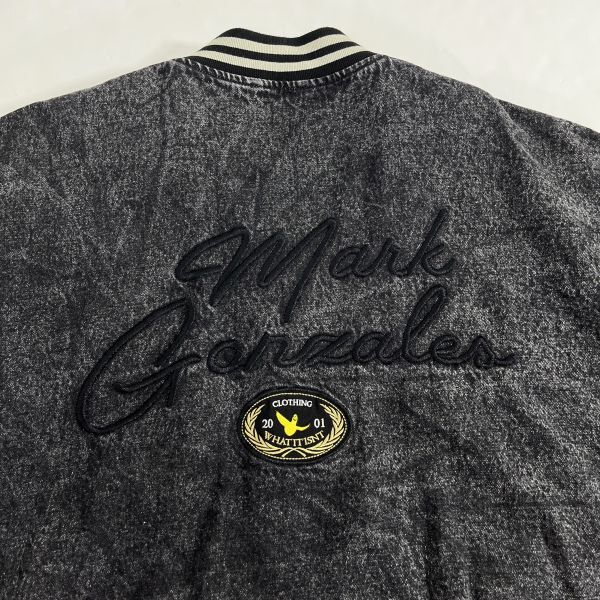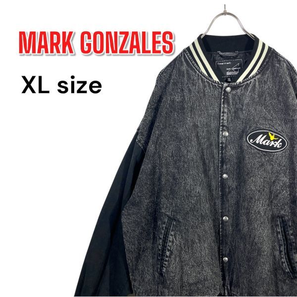 MARK GONZALES マークゴンザレス スタジャン ブルゾン 黒 ブラック XLサイズ ユーズド加工 大きいサイズ ワッペン 刺繍