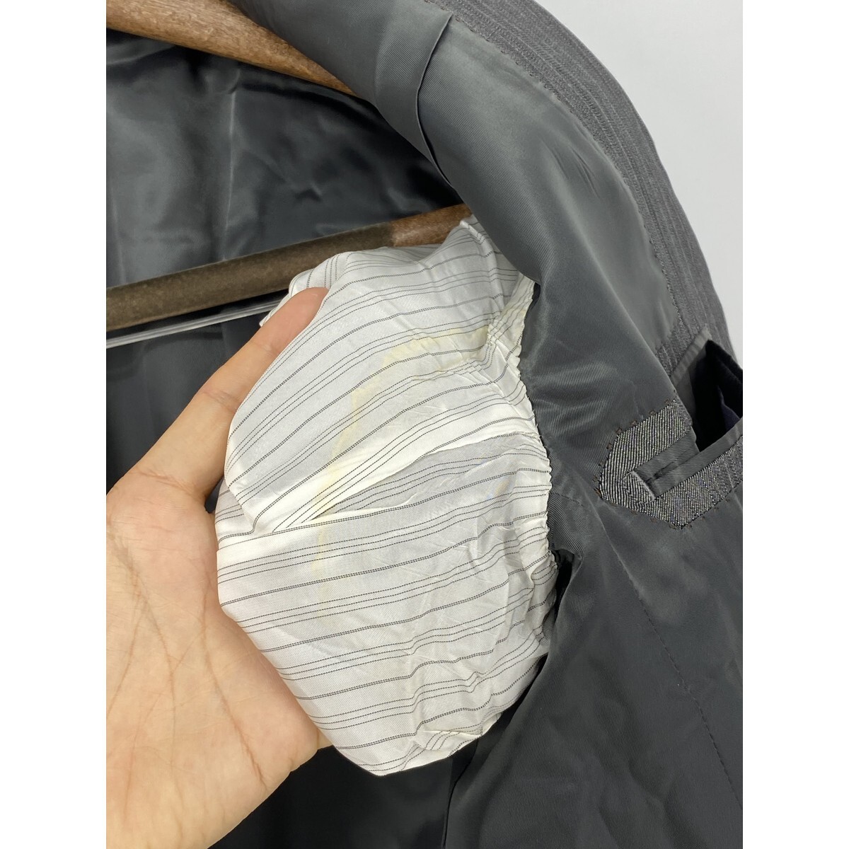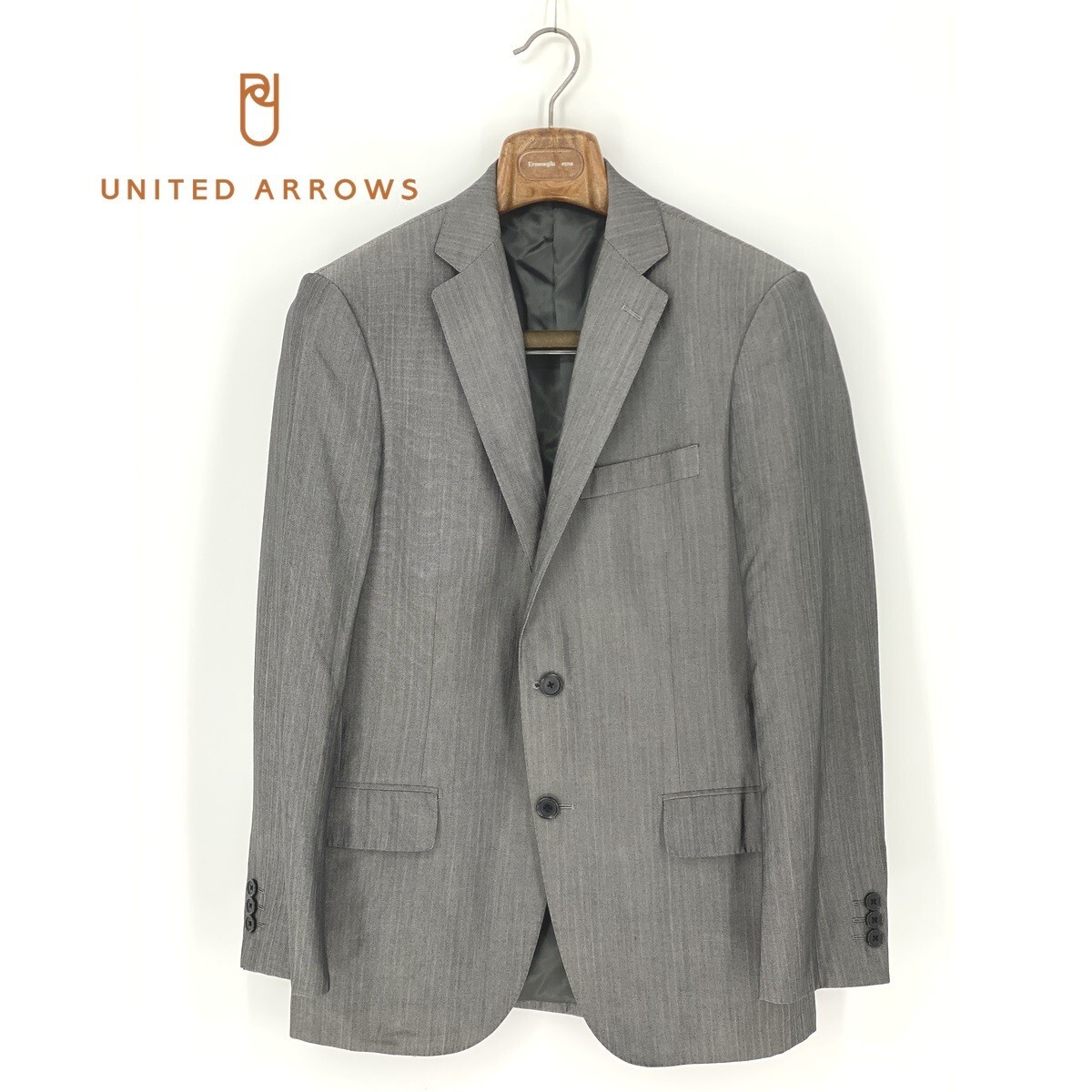 B0200/ UNITED ARROWS ユナイテッドアローズ ウール シルク ストライプ テーラード シングル2Bジャケット 46 M程 灰色 メンズ スーツ用