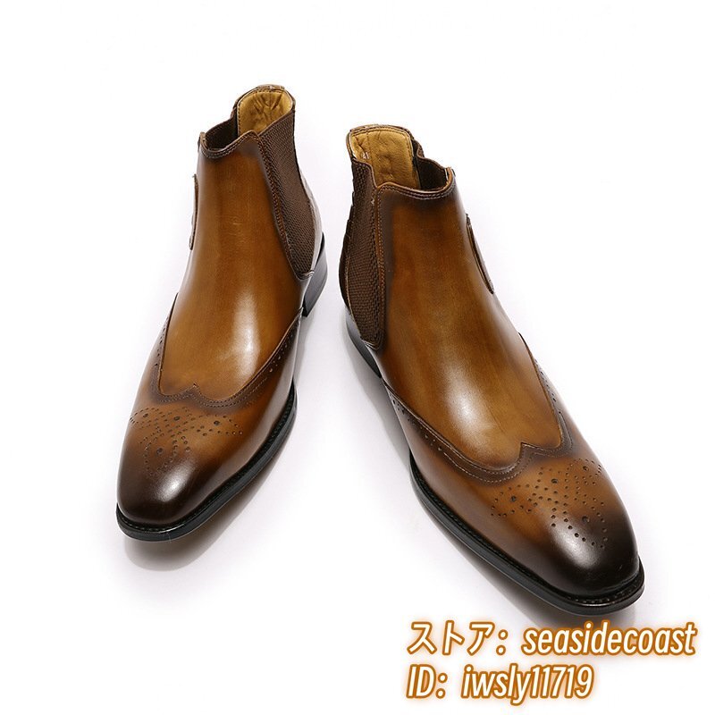 超希少*メンズブーツ 高級牛革 マーティンブーツ 職人手作り 彫り 本革 レザーブーツ 紳士靴 皮靴 ハイカット ビジネス ブラウン 24.5cm