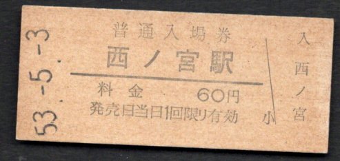 駅名改称(東海道本線)西ノ宮駅60円券(現 西宮駅)
