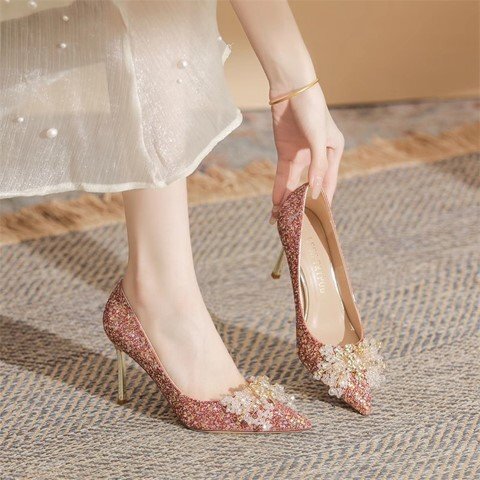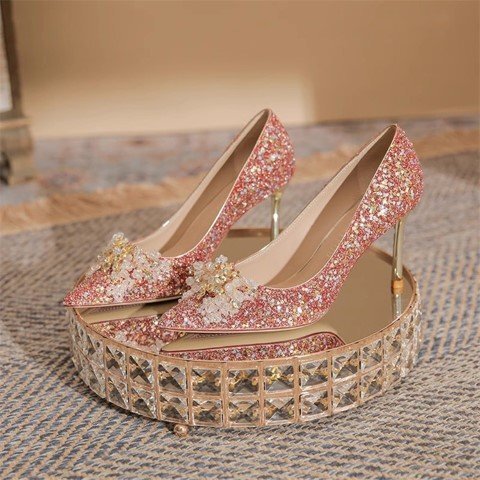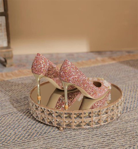 ウェディングドレス ウェディングシューズ パンプス ハイヒール 【36】23cm レッド(フラット)
