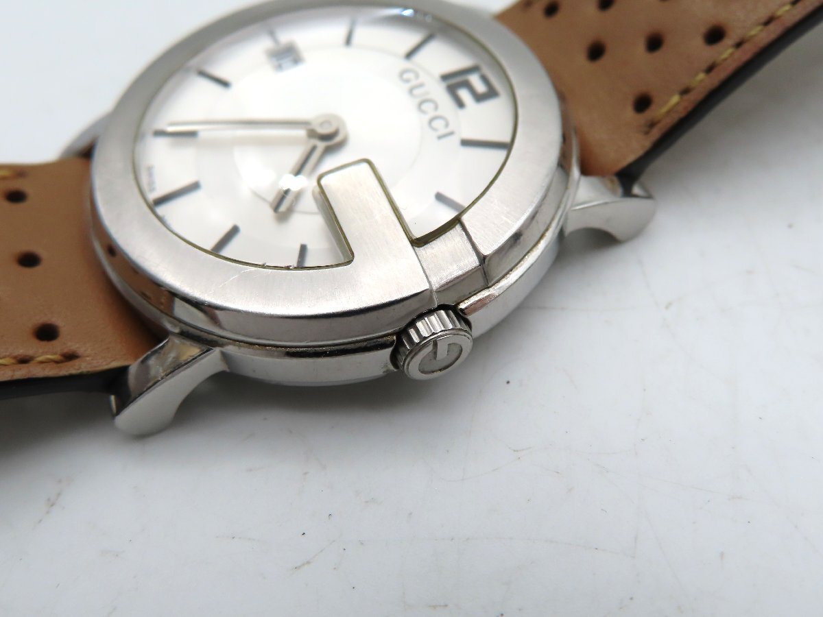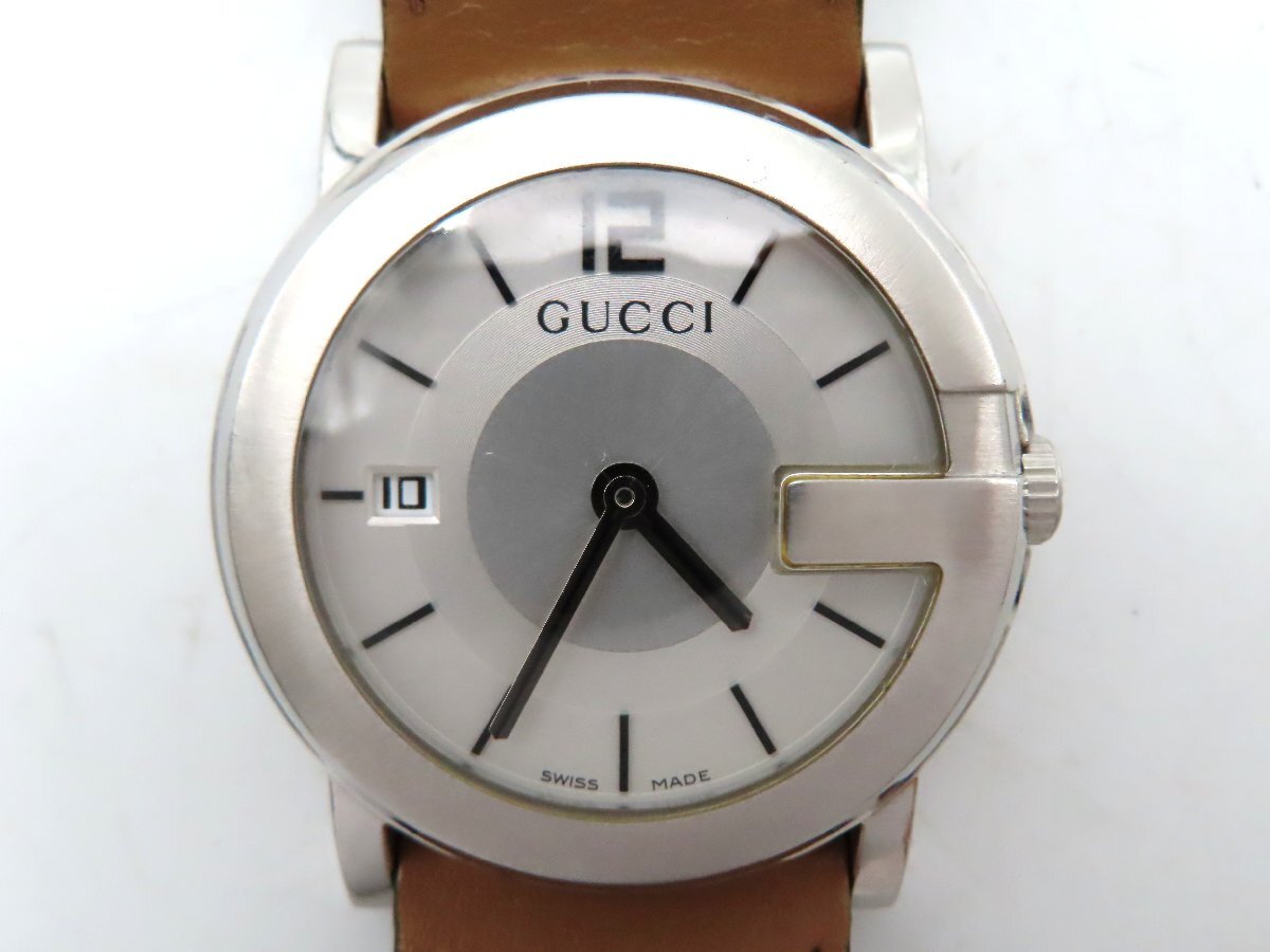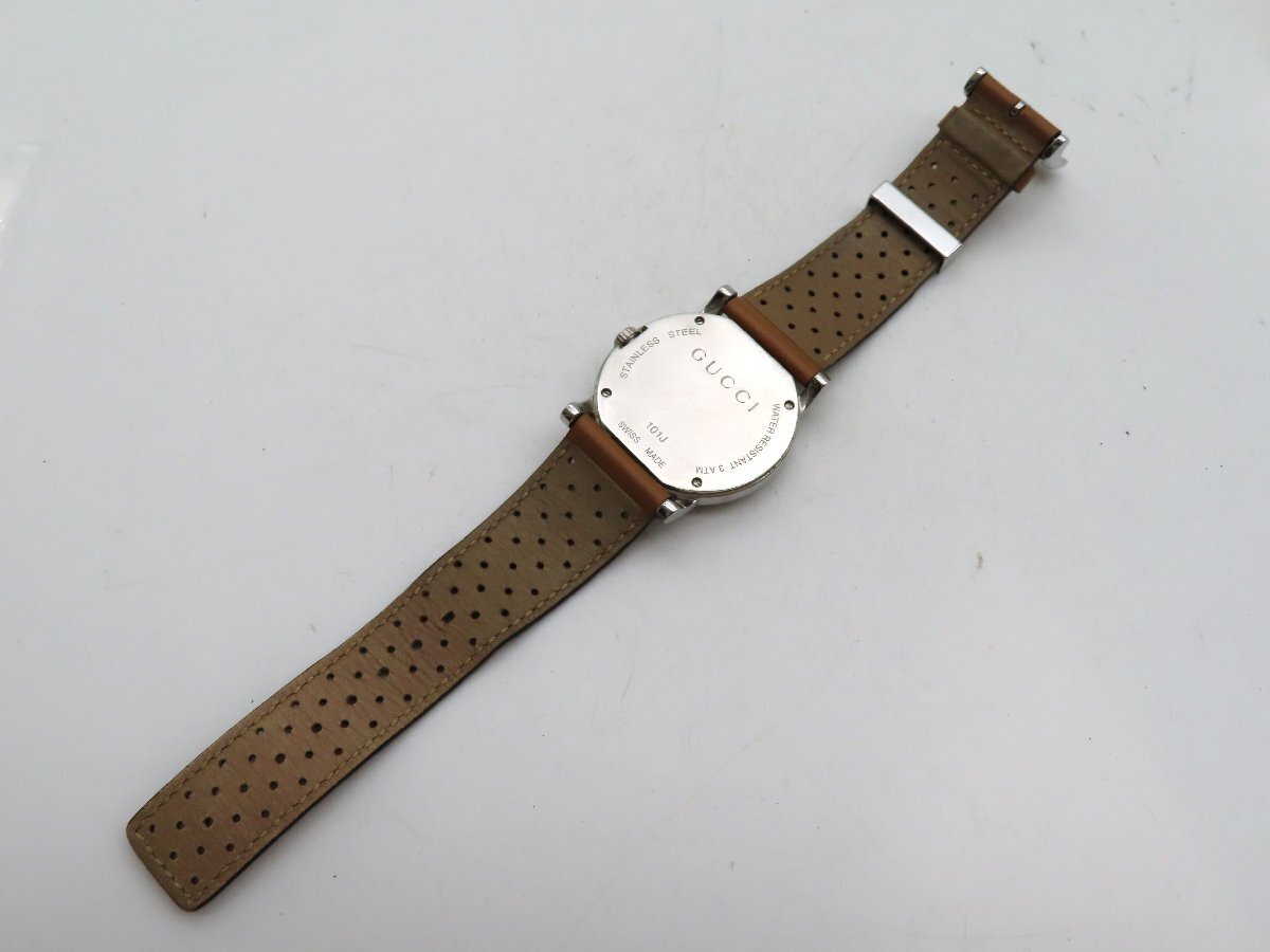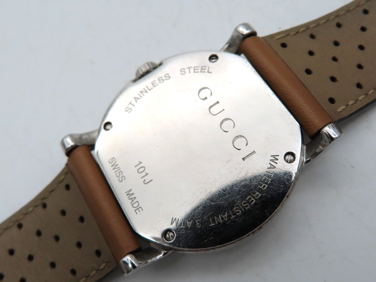 1円 グッチ 101J SS/革 シルバー文字盤 ボーイズ 稼働 QZ 26726 PRS
