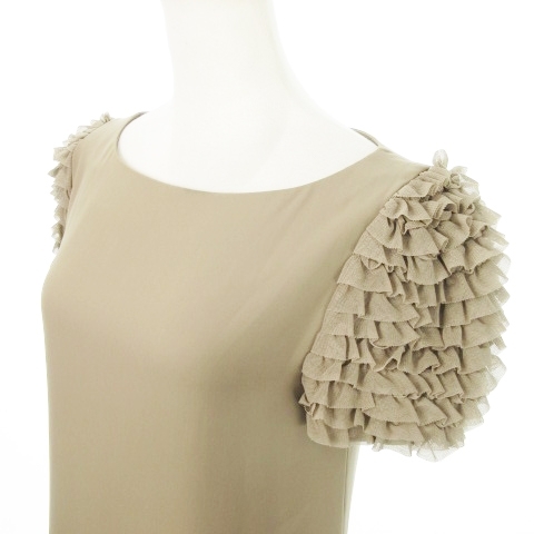 フォクシーニューヨーク FOXEY NEW YORK ブロッサムワンピース ミニ 半袖 フリルスリーブ とろみ感 38 M 茶 ブラウン