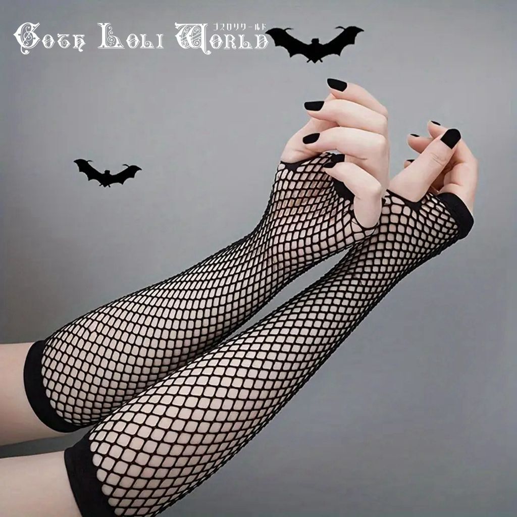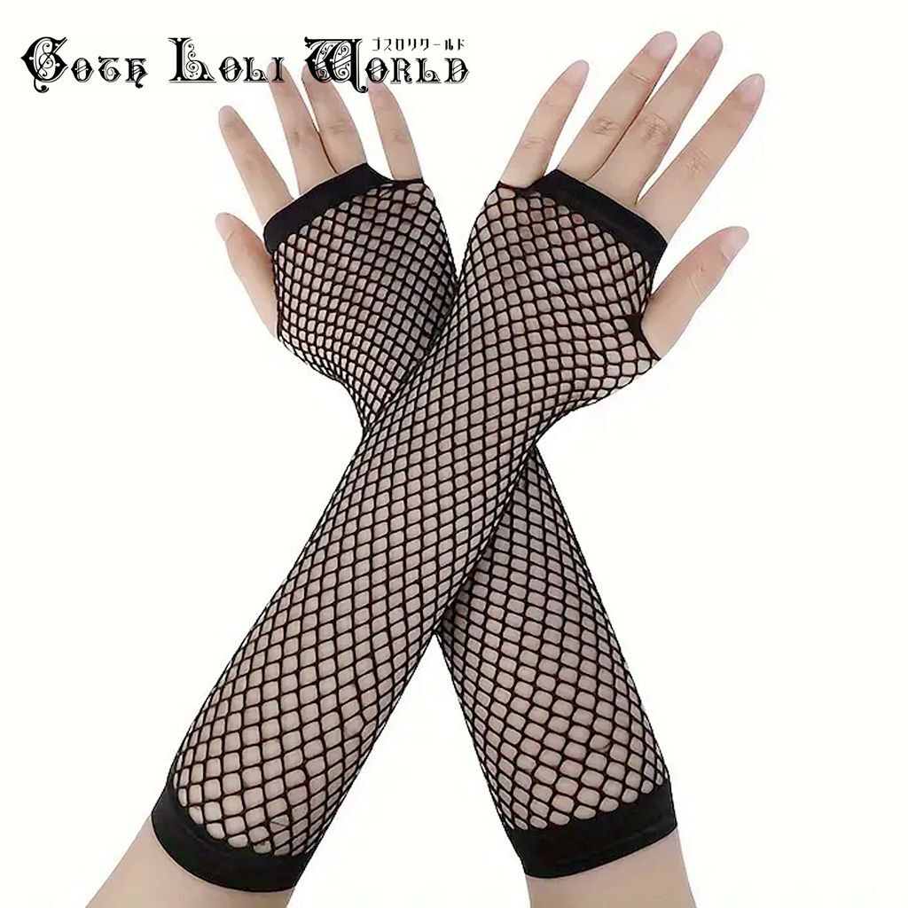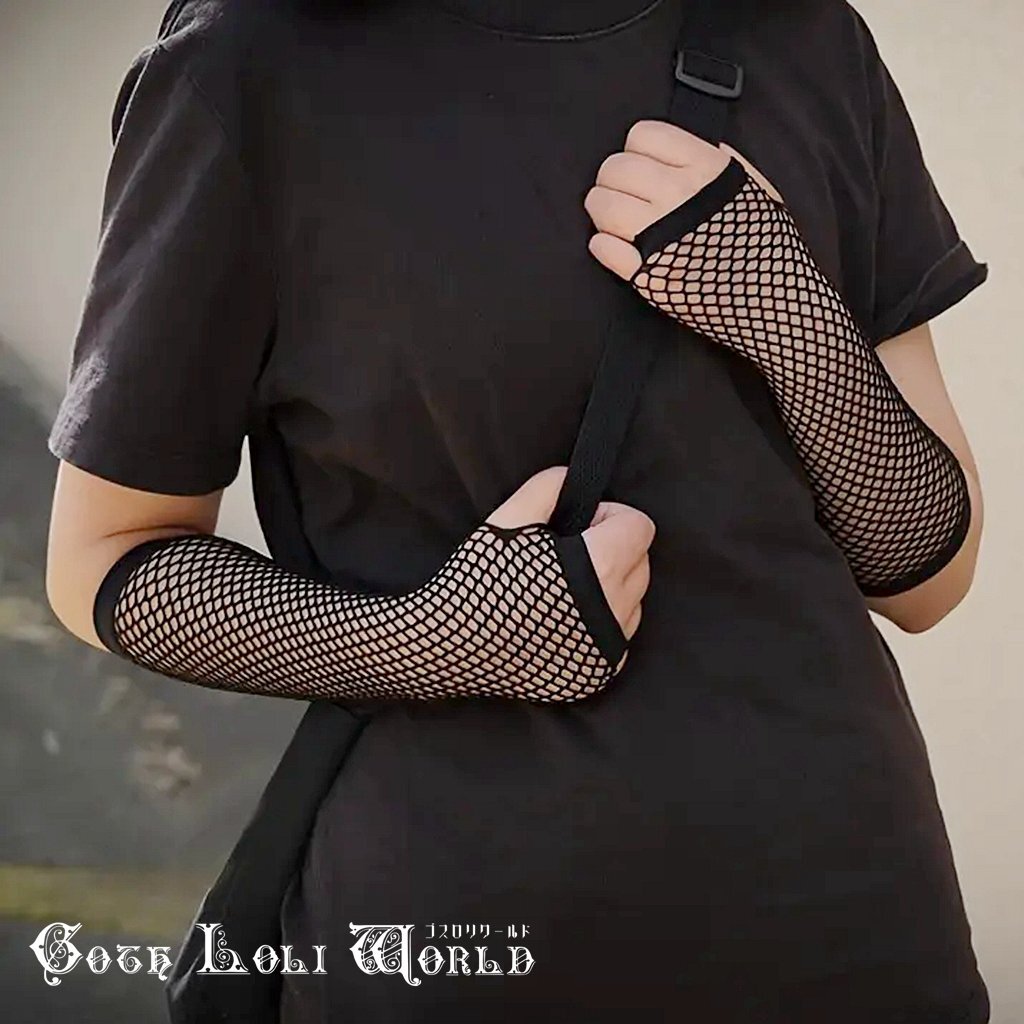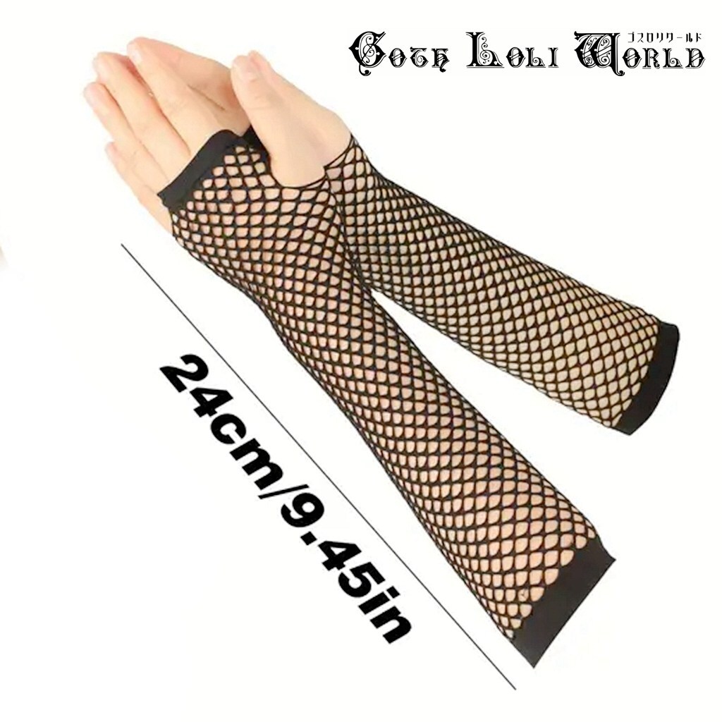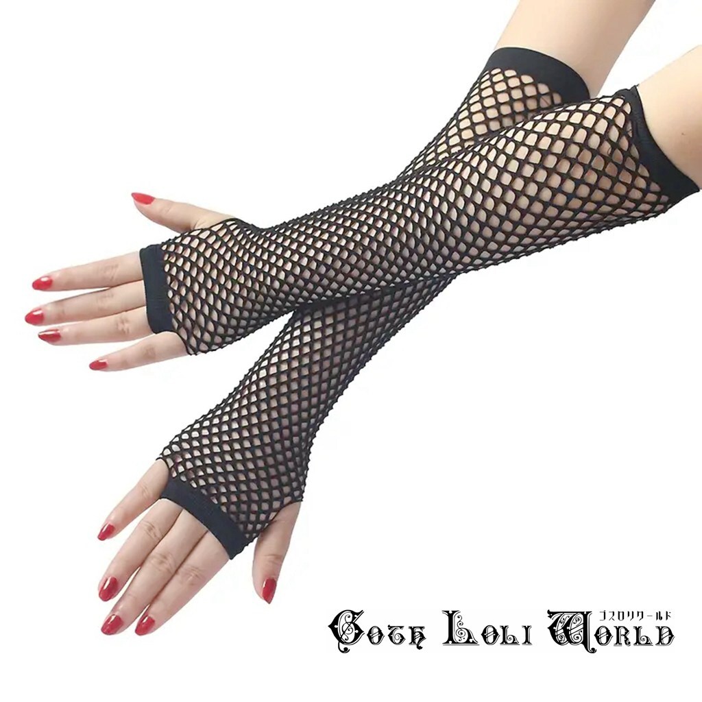 即納 CE-AGL008BK パンク ロック ファッション メッシュ ロング アームウォーマー アームカバー 手袋 黒色 地雷系 原宿系 舞台 仮装 衣装
