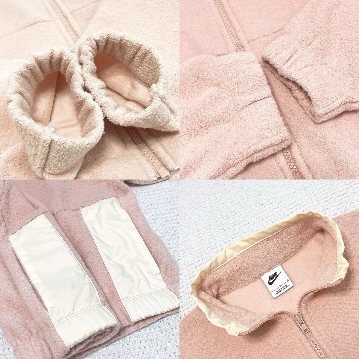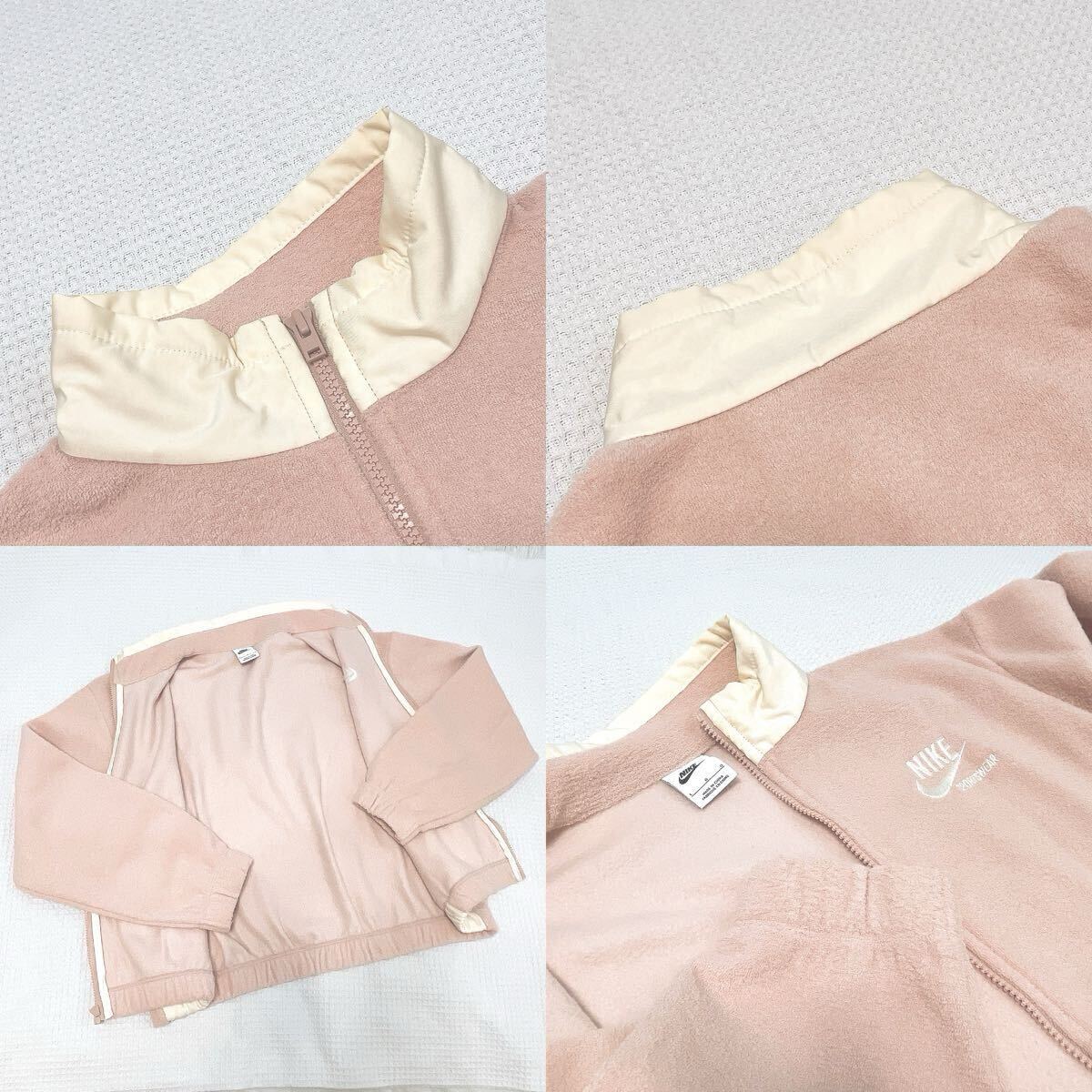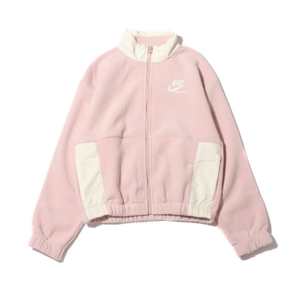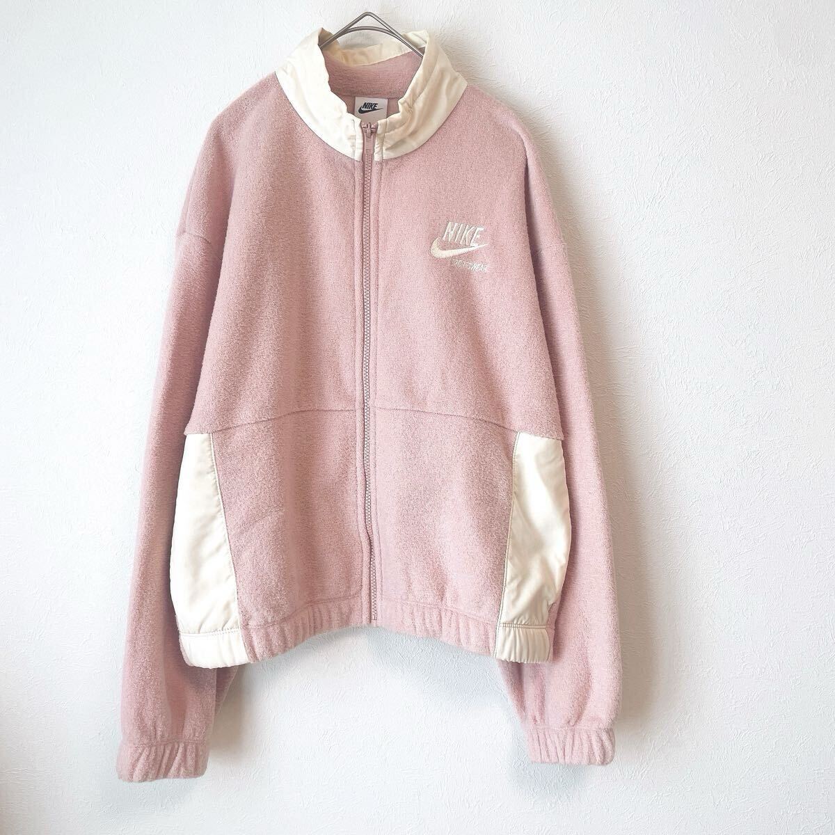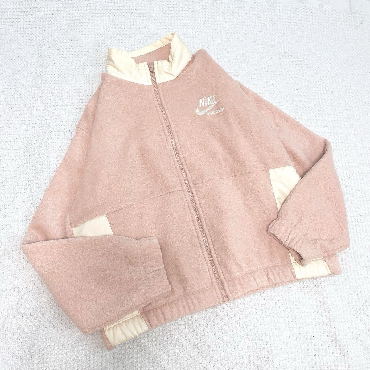 NIKEナイキ ウィメンズ NSW PLSH ヘリテージ ジャケット裏起毛ブルゾン アウターLサイズ オフホワイト白ホワイト ジップアップ ロゴ長袖