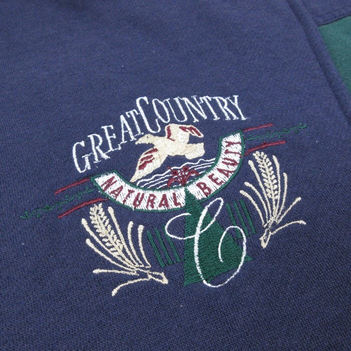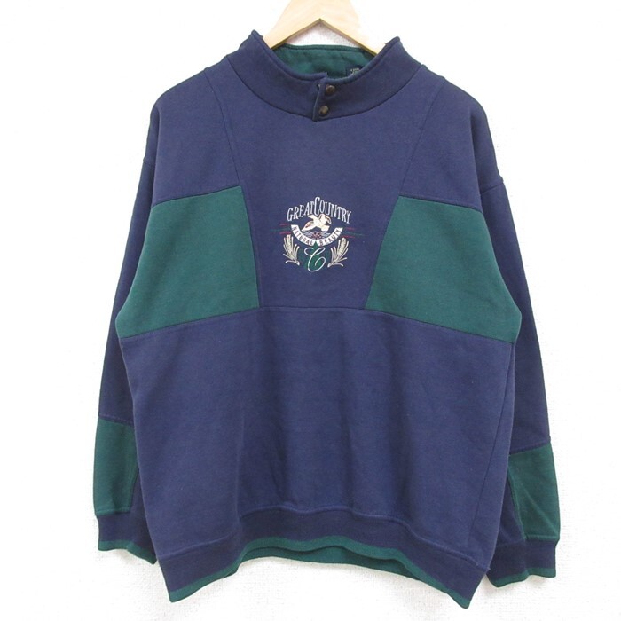 【商品名】 L★古着 オシュコシュ 長袖 スウェット メンズ 00年代 00s GREAT COUNTRY 刺繍 ツートンカラー モックネック ハイネック 紺他