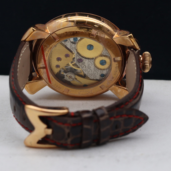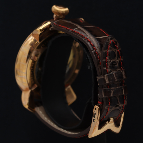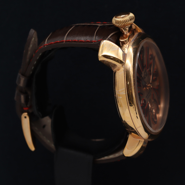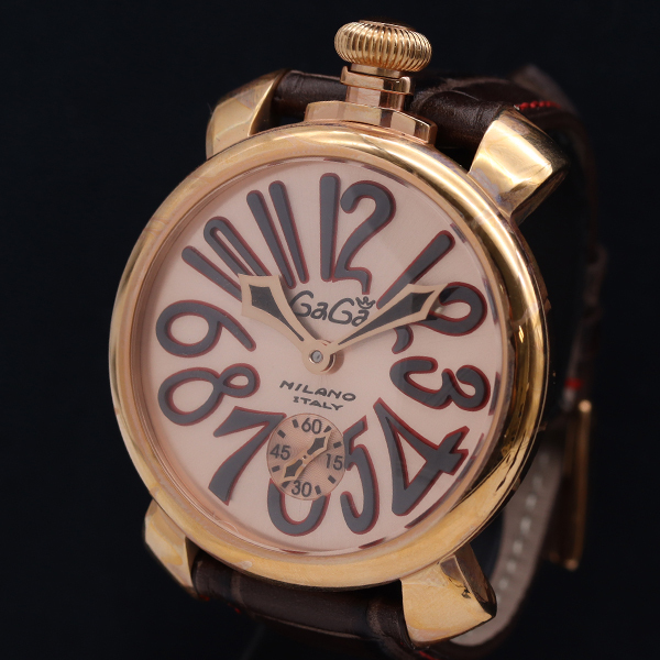 1円 稼働 ガガミラノ マヌアーレ 20129 手巻き ブラウン文字盤 メンズ腕時計 0026000 9NBG MST