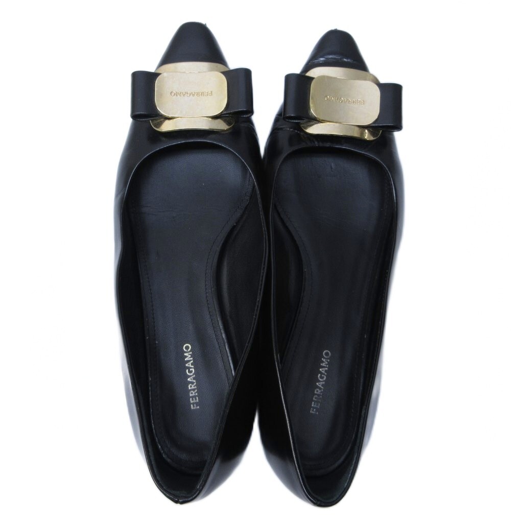 サルヴァトーレフェラガモ Salvatore Ferragamo フラットパンプス ヴァラ ポインテッドトゥ ロゴプレート 黒 ブラック 6 約24cm IBO79