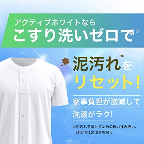 商品説明 | ただでさえ忙しい家事時間を短縮!こすり洗いなし!超時短でラクラク 週2回洗濯してもなんと1か月約66円のコストパフォーマンス! 繊維の奥のガンコな汚れまでスッキリ落とします 泥汚れ、汗、血液の汚れに効果が高い 数か月使い続けると、衣類の黄ばみ、黒ずみ、くすみに違いがでる 汚れだけでなく、イヤなニオイもスッキリ解決します