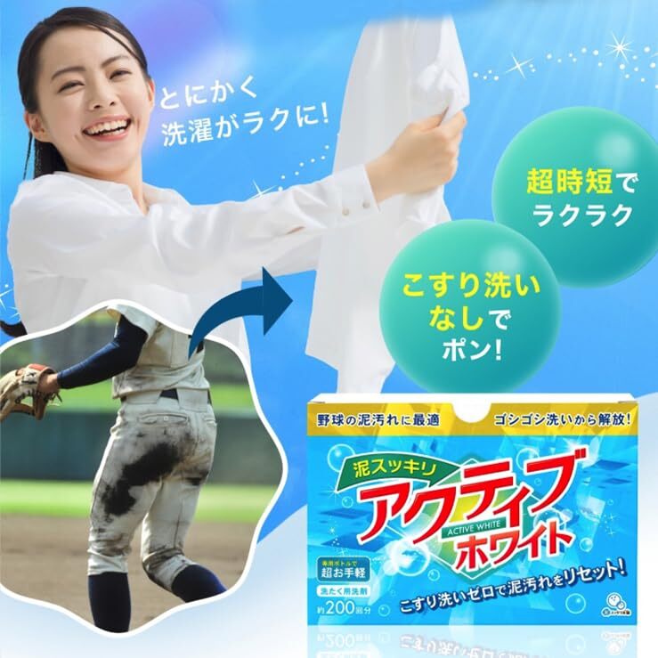 商品名 | こすり洗い不要 泥スッキリ アクティブホワイト 200回分 (専用容器付き) | ||