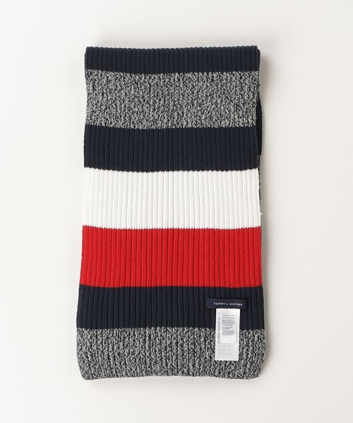 「TOMMY HILFIGER」 ボーダー柄マフラー - ネイビー メンズ