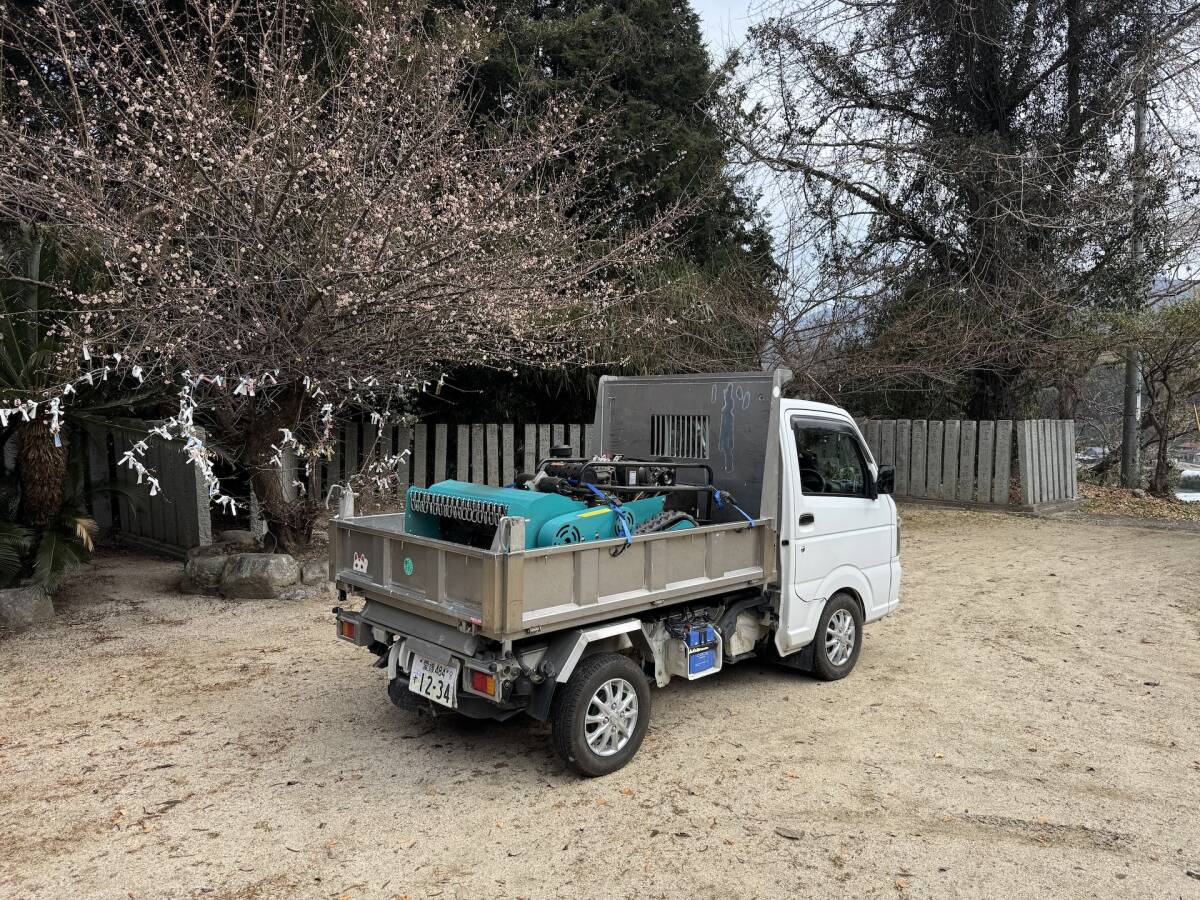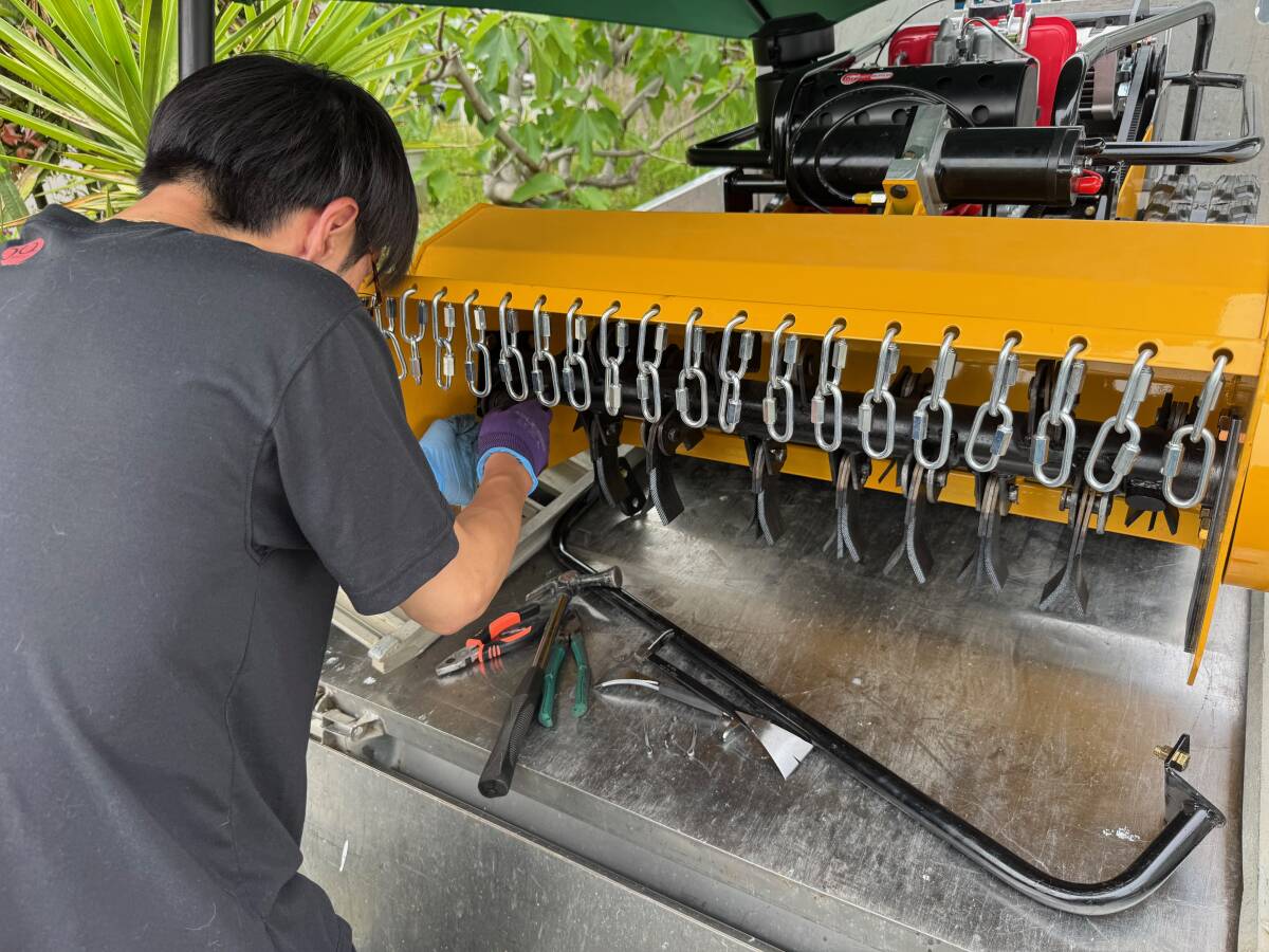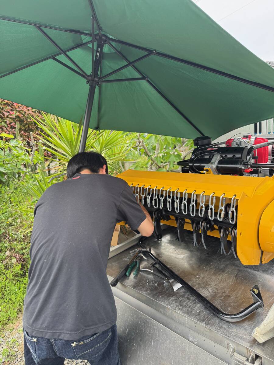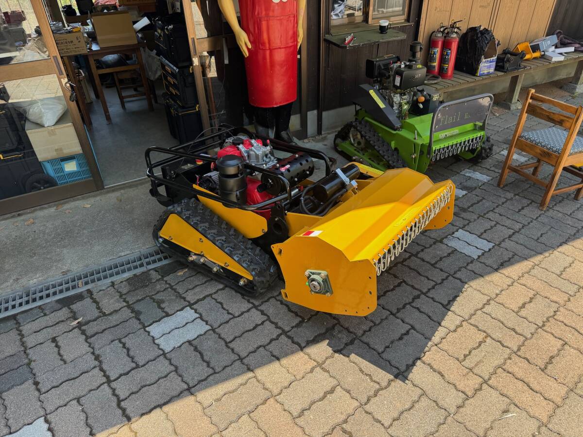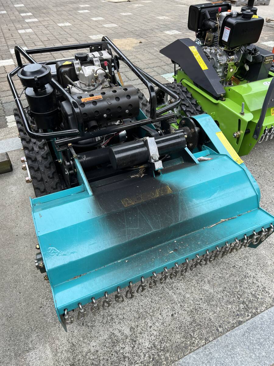 ディーゼルエンジンで草刈り、モータで走行するハイブリッドタイプです。