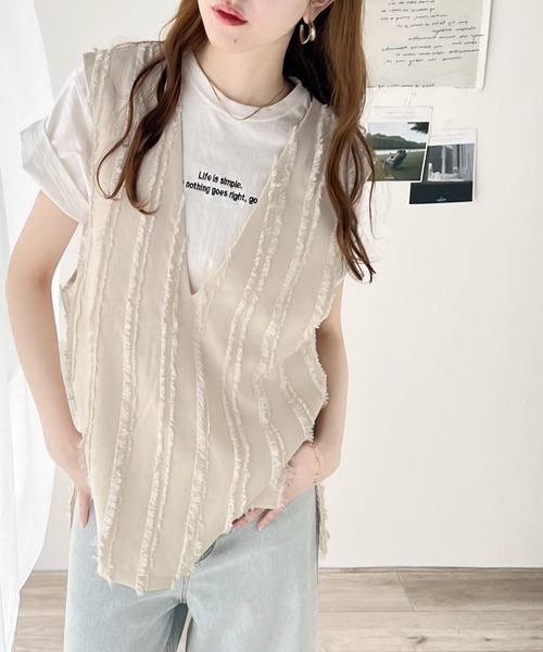 参考商品名:一枚で着映える。前後2wayカットジャガードVネックフリンジベスト