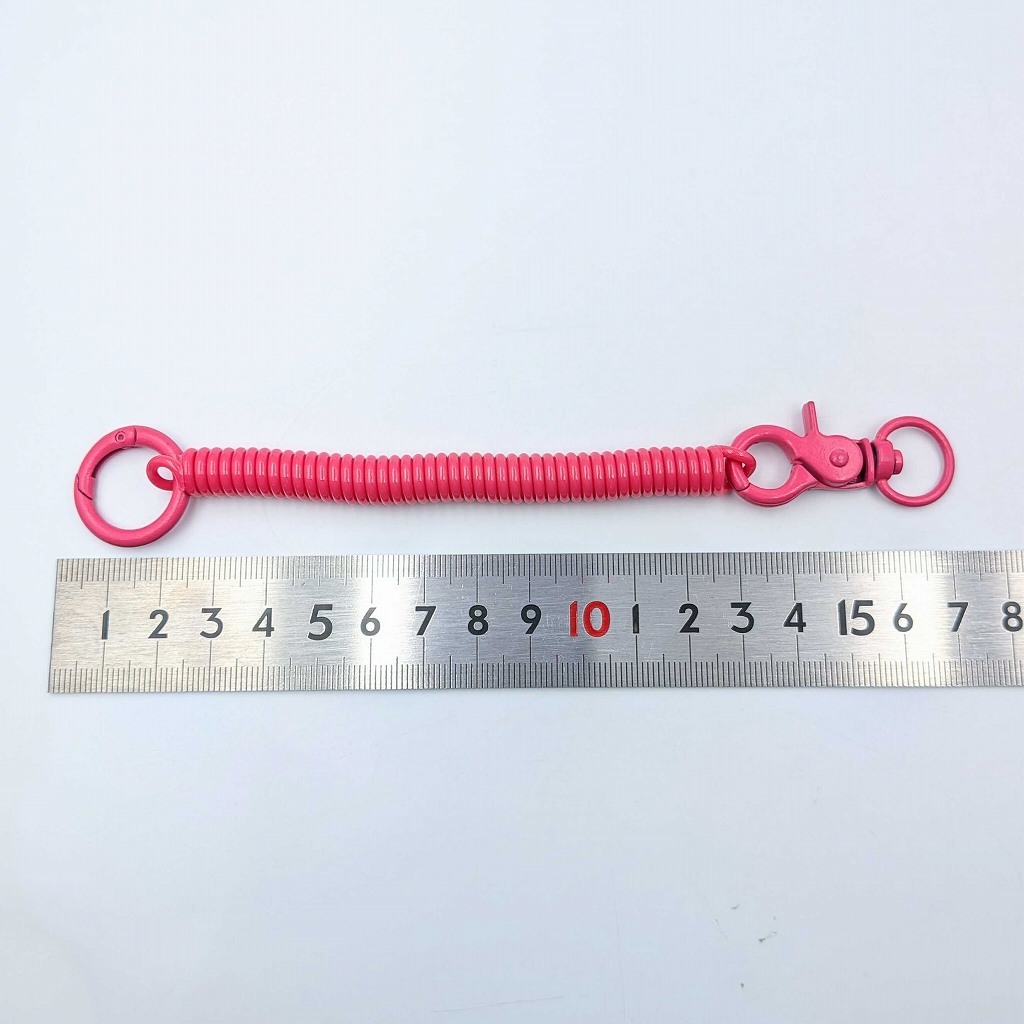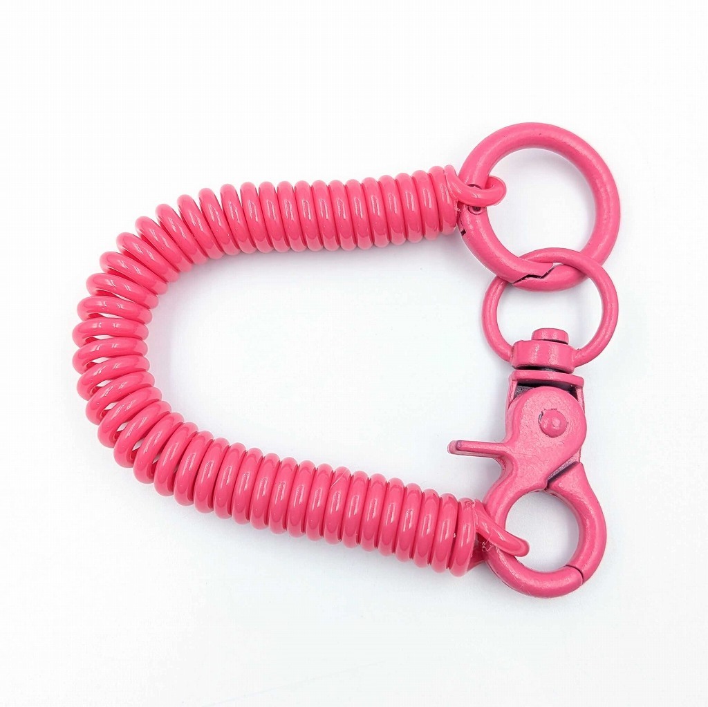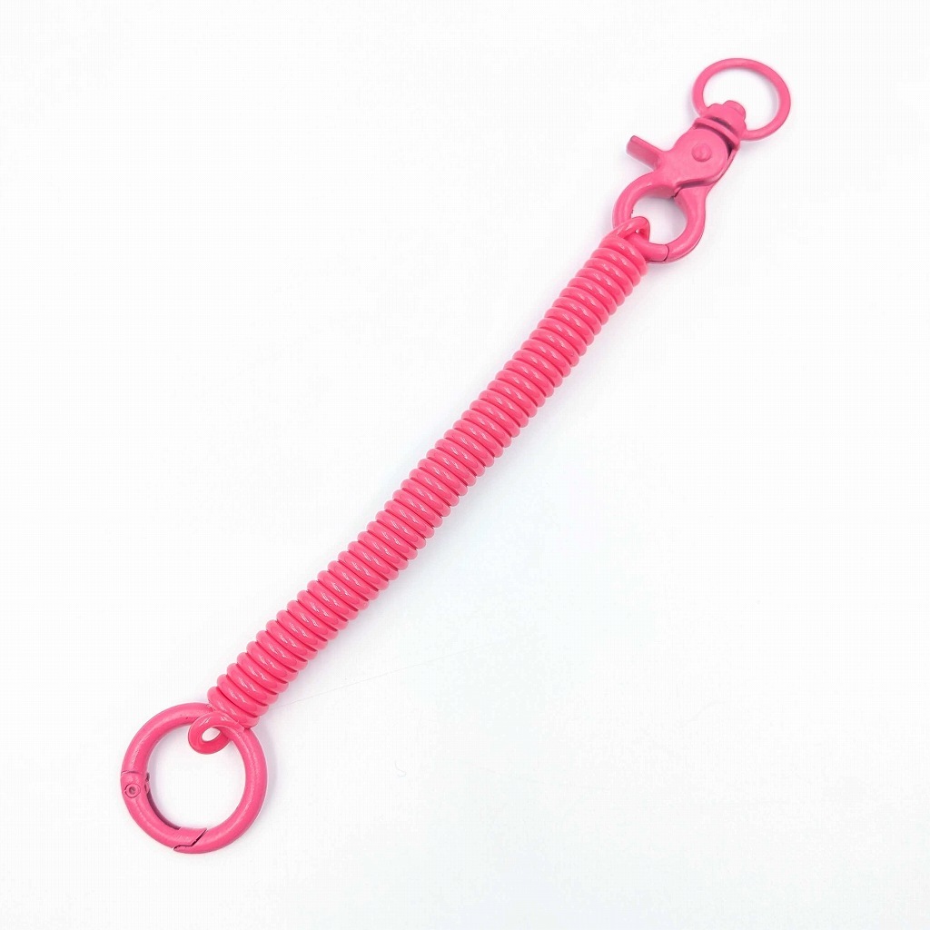 コイルスプリングキーホルダー ピンク 1個 全長約17cm スパイラルキーチェーン キーリング付き 伸縮 紛失防止 アウトドア ビーズクラブ