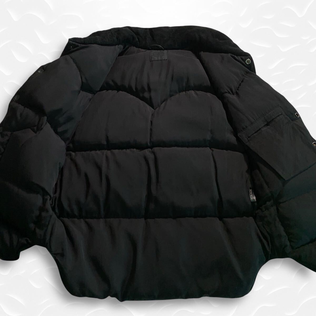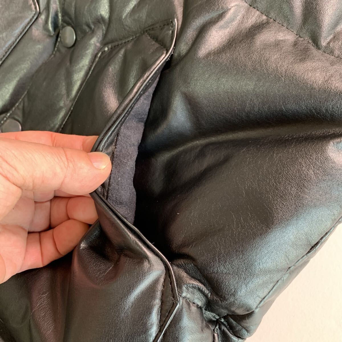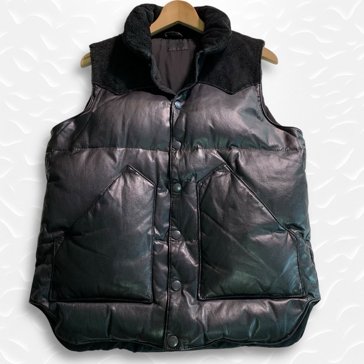 ほぼ無名のブランドのダウンベストですが、日本製で牛革の質感やスエードの毛羽立ち感もなかなか良く出来ております。