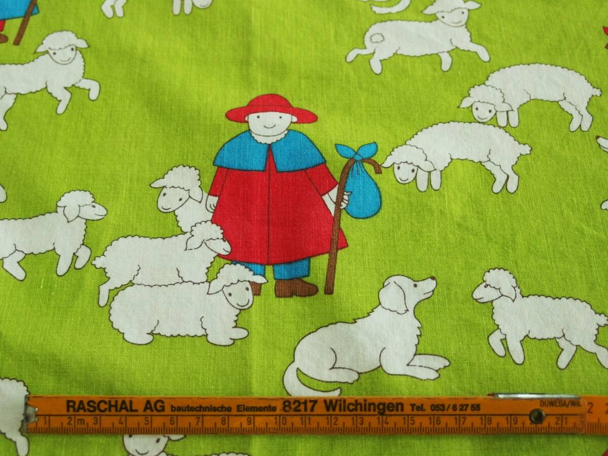 スイス製 ヴィンテージ&レトロ ファブリック / ハギレ / 生地 / 布地 (羊飼い、ボタンホールあり) 2