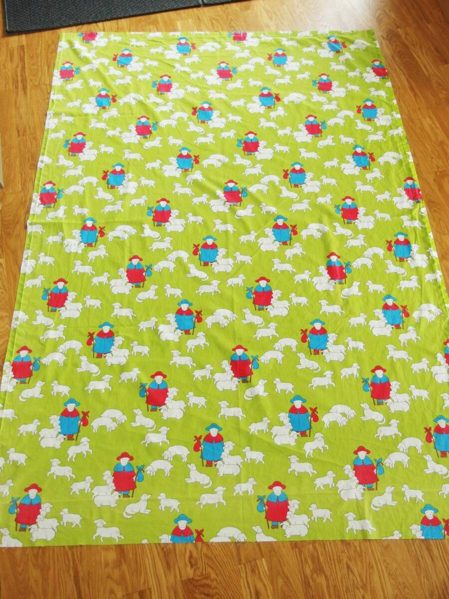 スイスで入手したヴィンテージのユーズドファブリック。入手時は、掛け布団カバーだったのですが、縫い目を解き1枚布にしました。