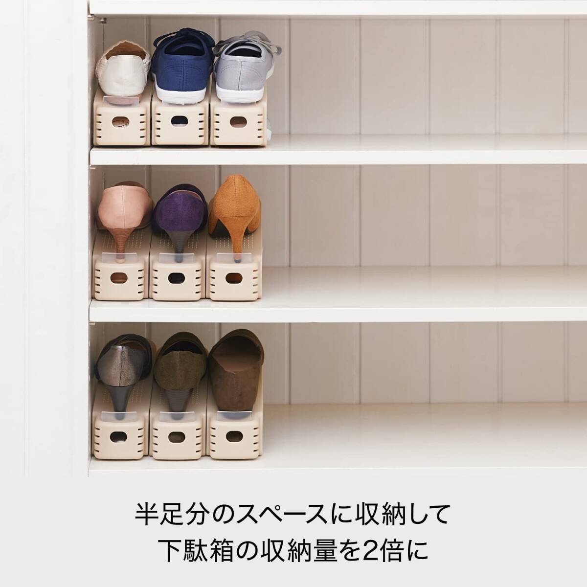 ライクイット (like-it) 靴 収納 くつホルダー スリム 6個入 ベージュ 幅8x奥26x高13.5cm 197449 日本製 省スペー